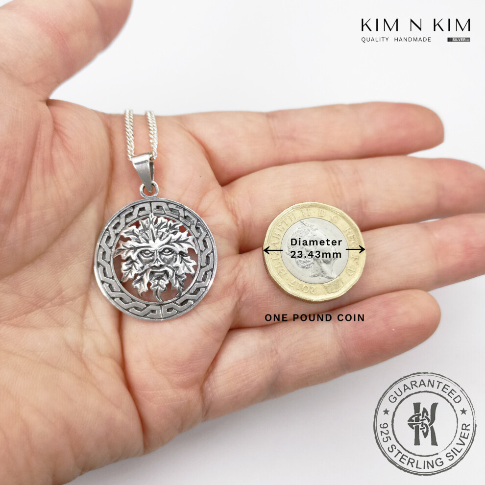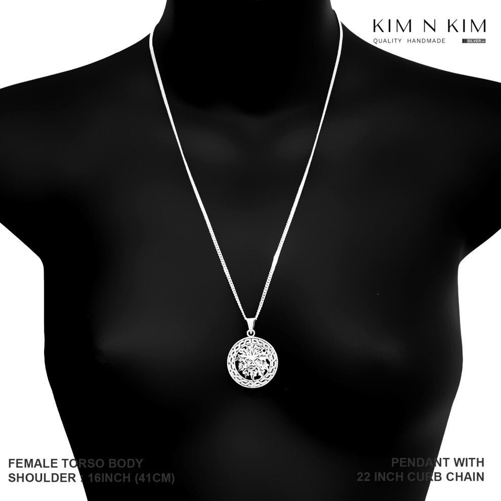 (16 Inch Curb Chain) Celtic Green Man Pendant Necklace /Free Engraving /925 Silver Description