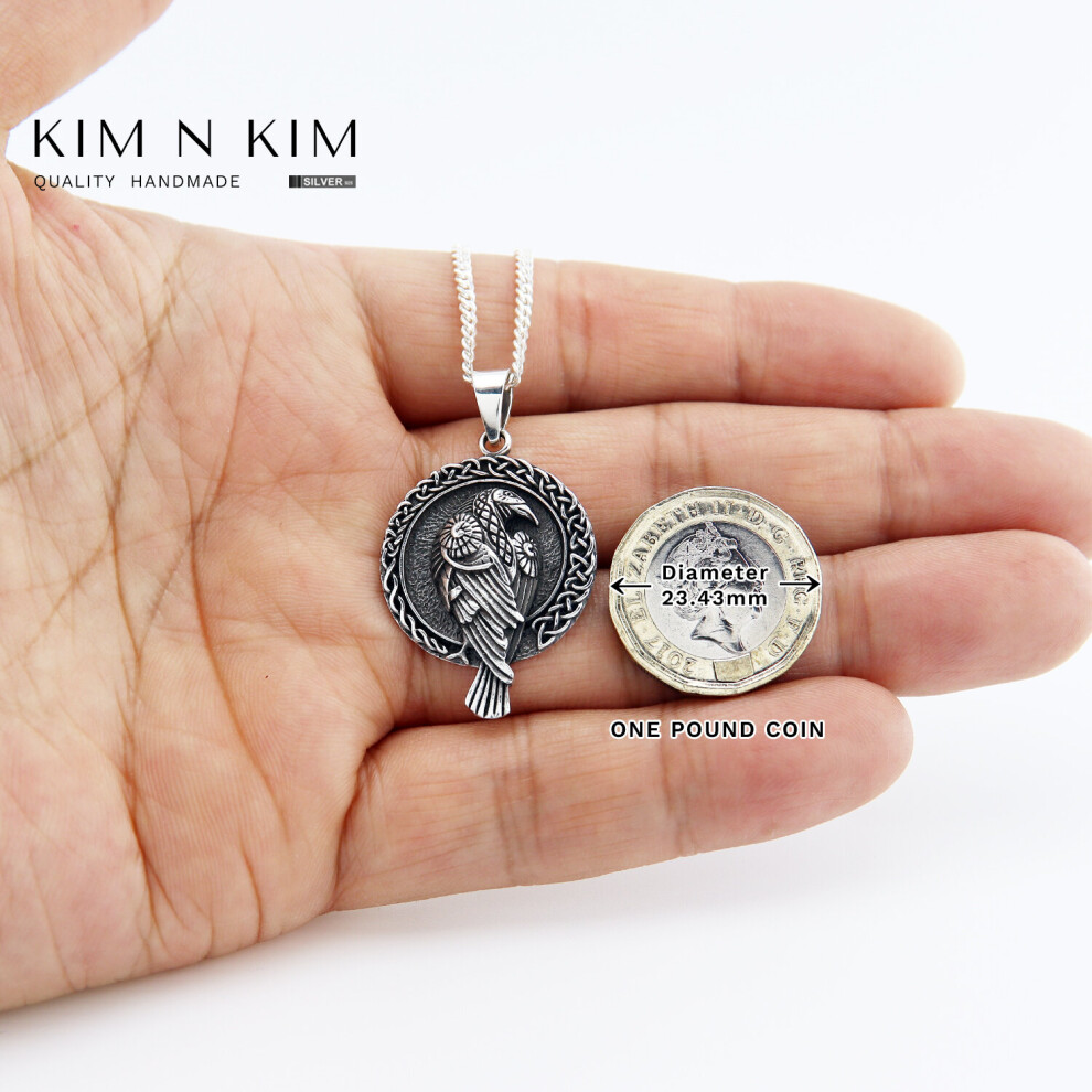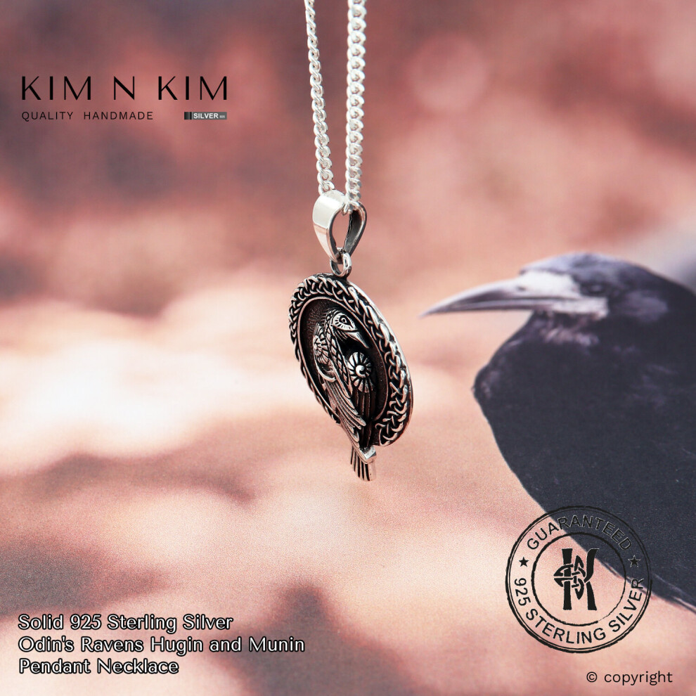(32 inches, No Engraving ) Odin’s Ravens Hugin and Munin Pendant Necklace/Faithful Companion/Norse/Celtic/Crow/Personalised/925 Solid Sterling Silver/Quality-KIMNKIM Description
