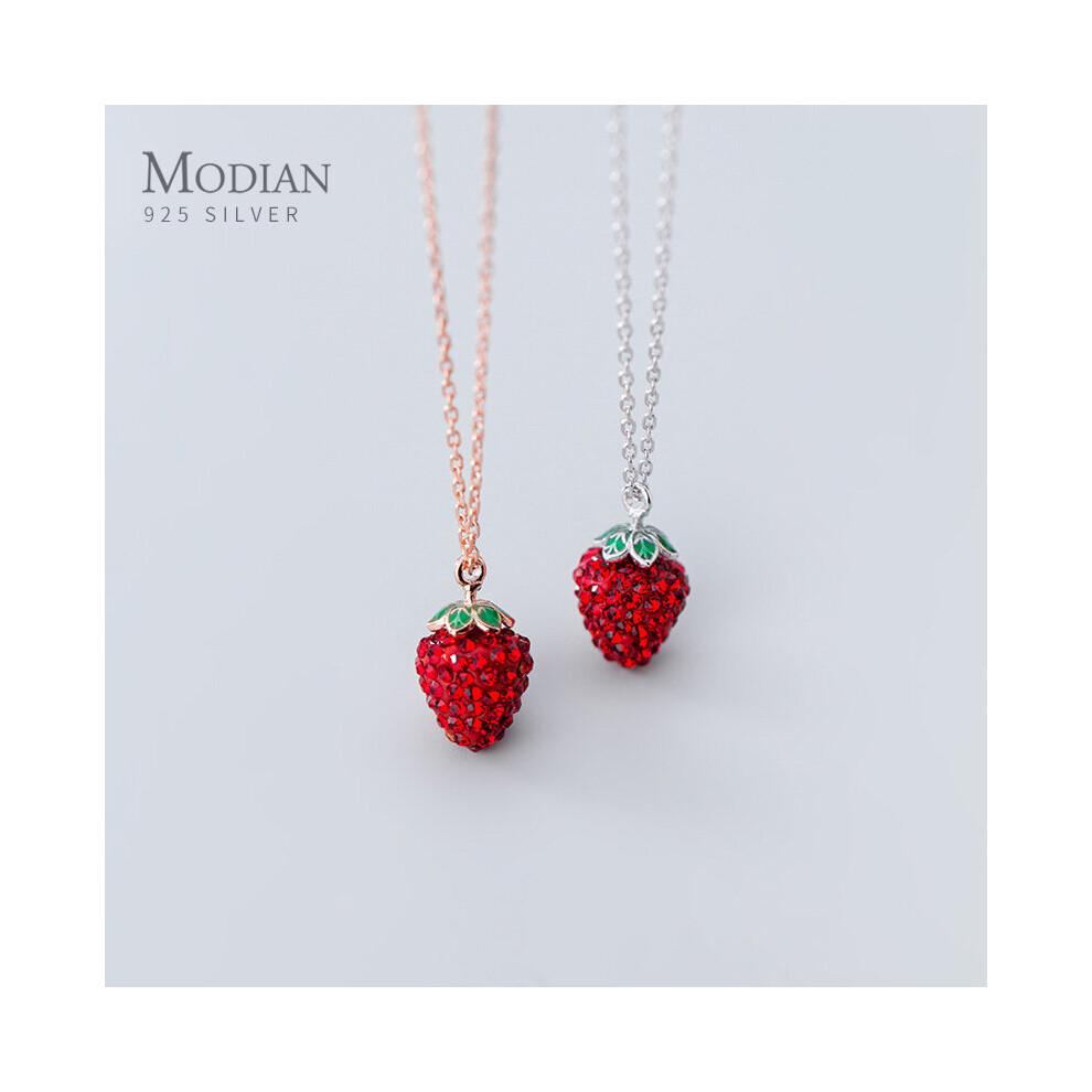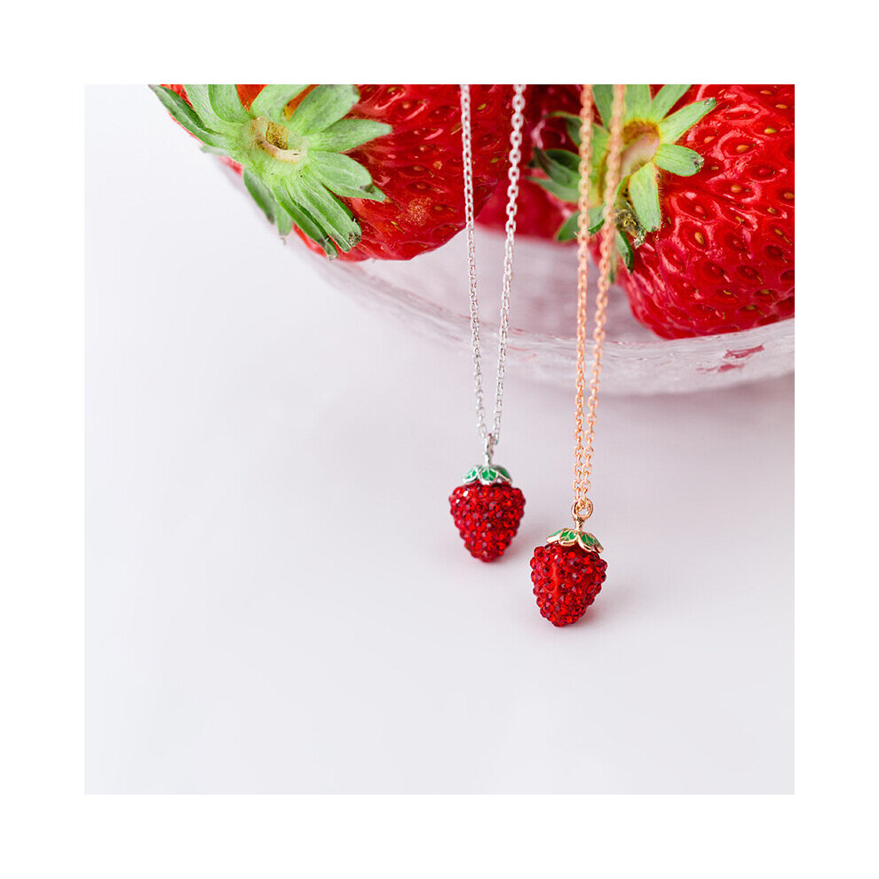 925 Sterling Silver 3D Strawberry Pendant Necklace for Women Crystal Chain Link Necklaces Fine Jewelry Description