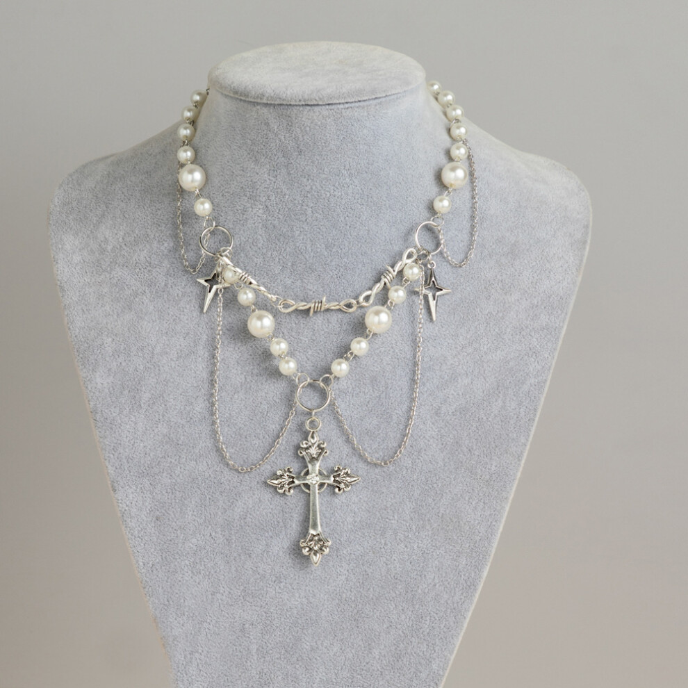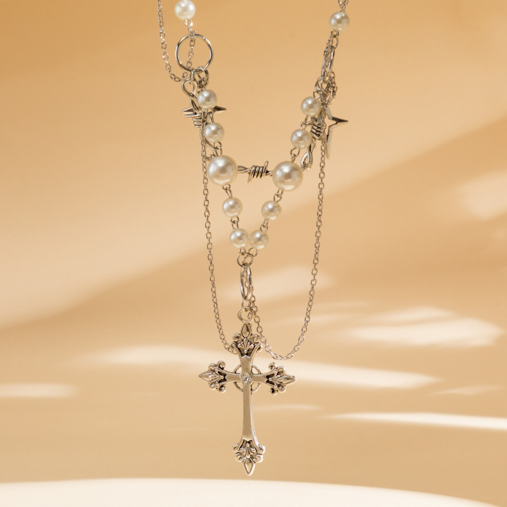 Bohemian Trendy Multilayer Necklace With Elegant Imitation Pearl Cross And Heart Pendants For Women Description
