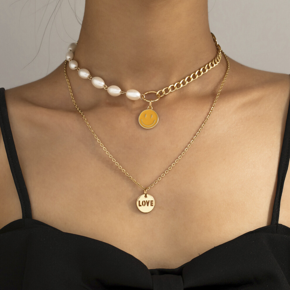 Geometric Trendy Double Layer Pearl Necklace With Unique Circle Shape And Love Pendant Description