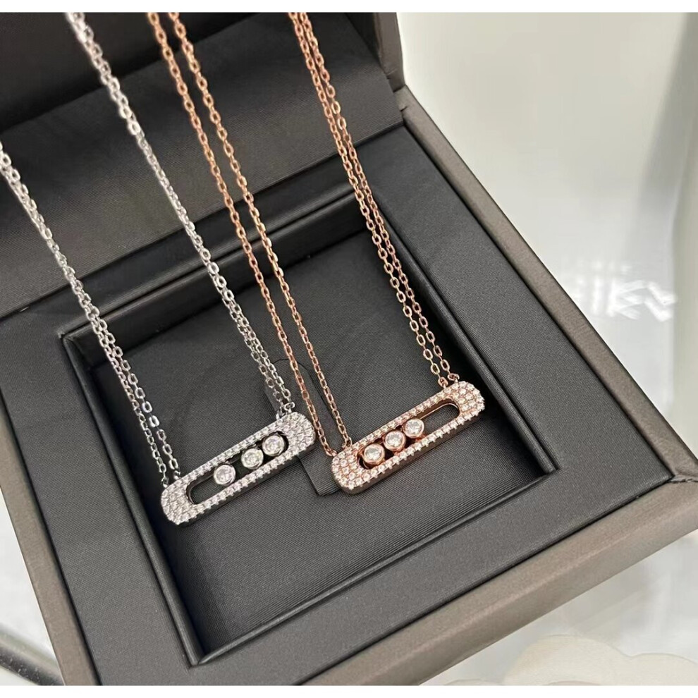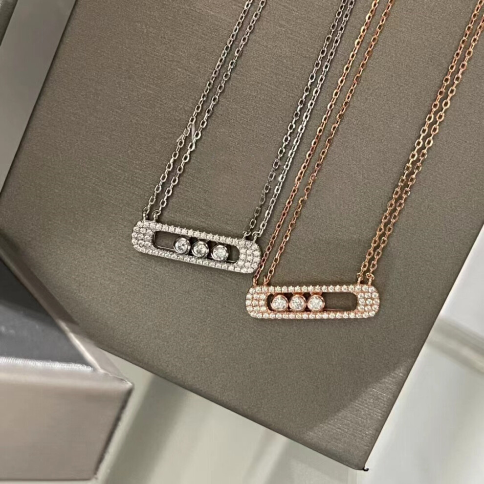 Messica 925 Sterling Silver Necklace Full Diamond Three Diamond Sliding, Double Layer Necklace Temperament Description