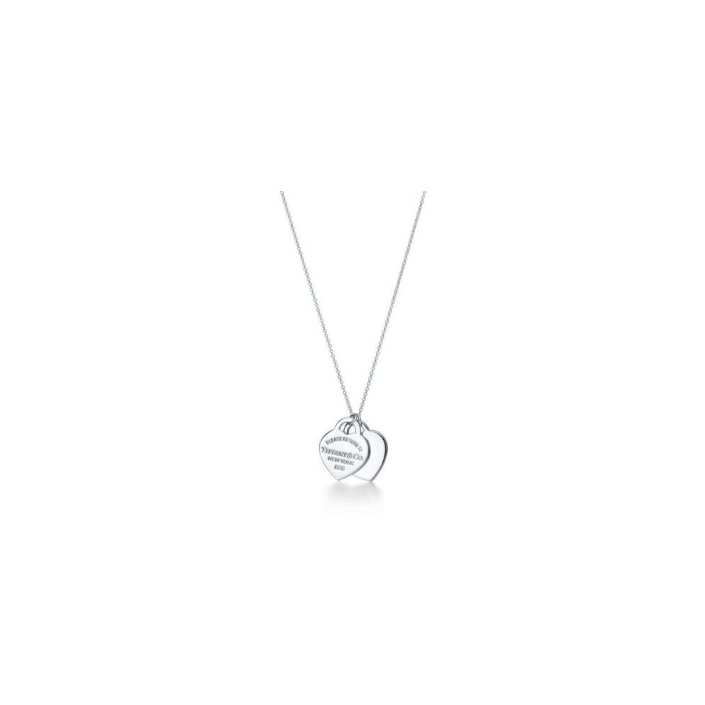 Double Heart Tag Pendant Necklace Double Heart-shaped Enamel Necklace 925 Sterling Silver Charm Jewelry Pink Blue Pendant Sweet Fashion Necklaces for Women