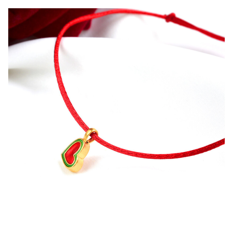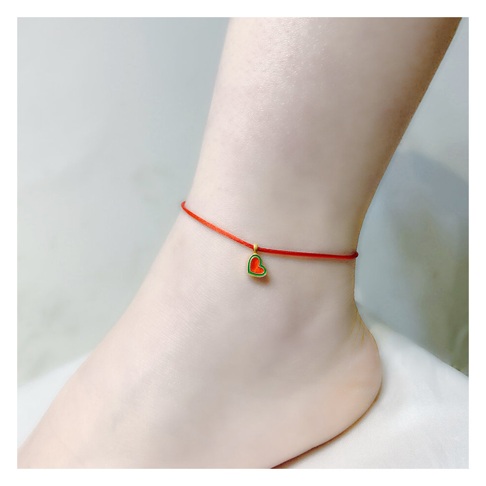 Real 24K Anklet 999 Heart Pendant Adjustable Red Rope for Women Fine Jewelry Gift J572 Description
