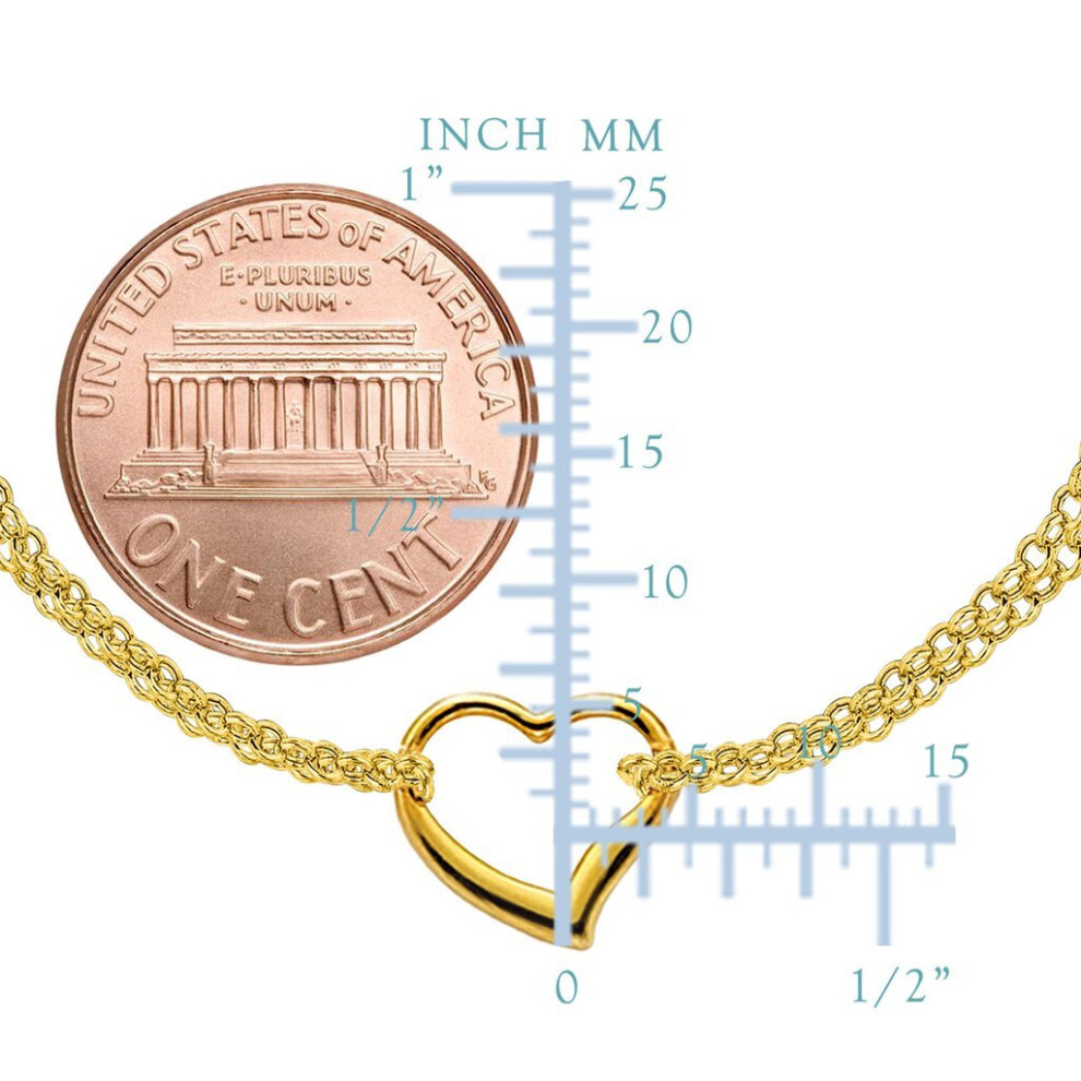 10K Yellow Gold Double Strand With Heart Anklet, 10″ Description