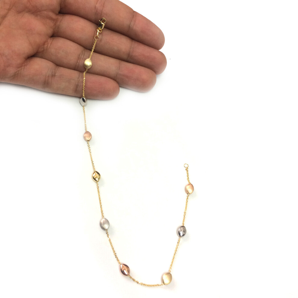 14K Yellow White And Rose Gold Charms Fancy Anklet, 10″