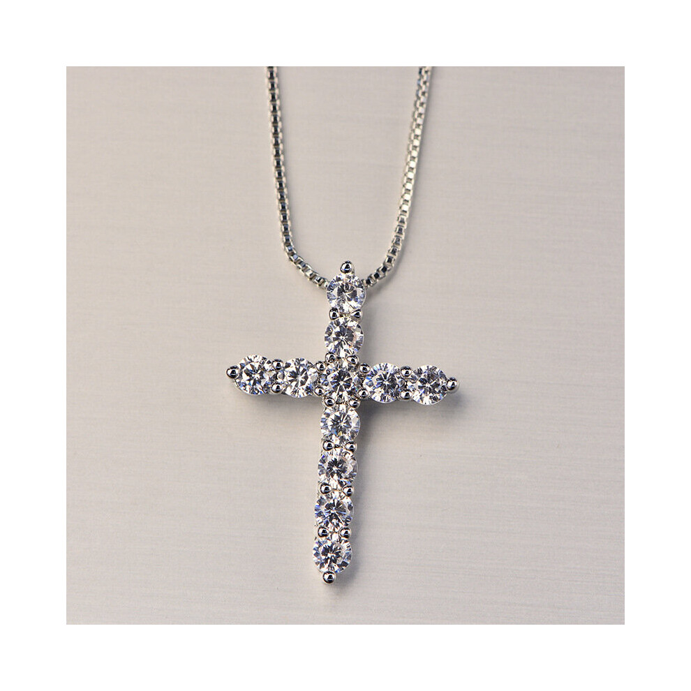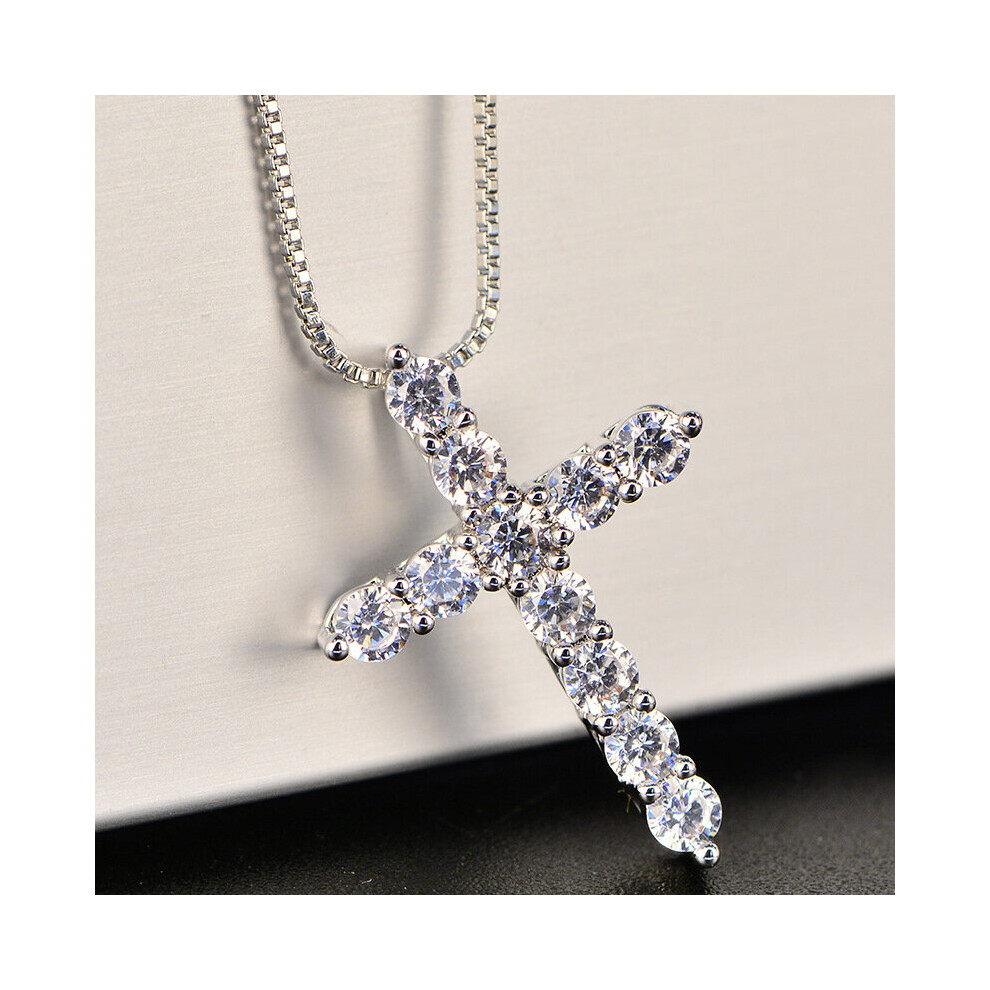 16-24inches 925 Silver Necklace Box chain crystal cross Pendant For Women men Jewelry Description