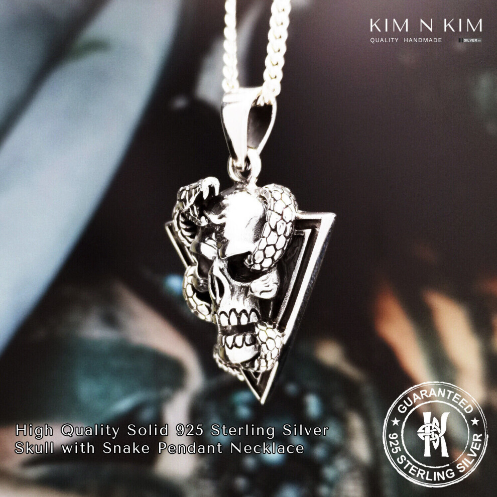 Brand or Name: 925 Sterling Silver Skull with Snake Pendant