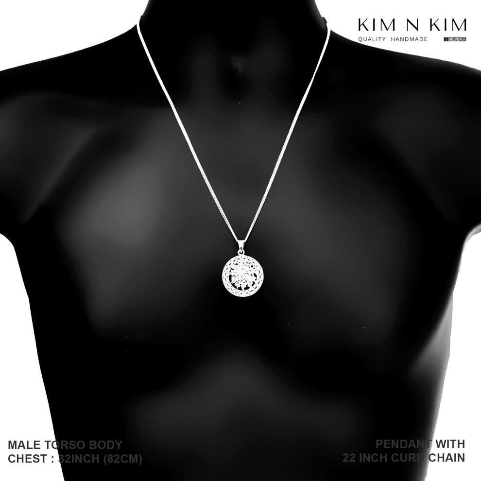 (18 Inch Curb Chain) Celtic Green Man Pendant Necklace /Free Engraving /925 Silver Description