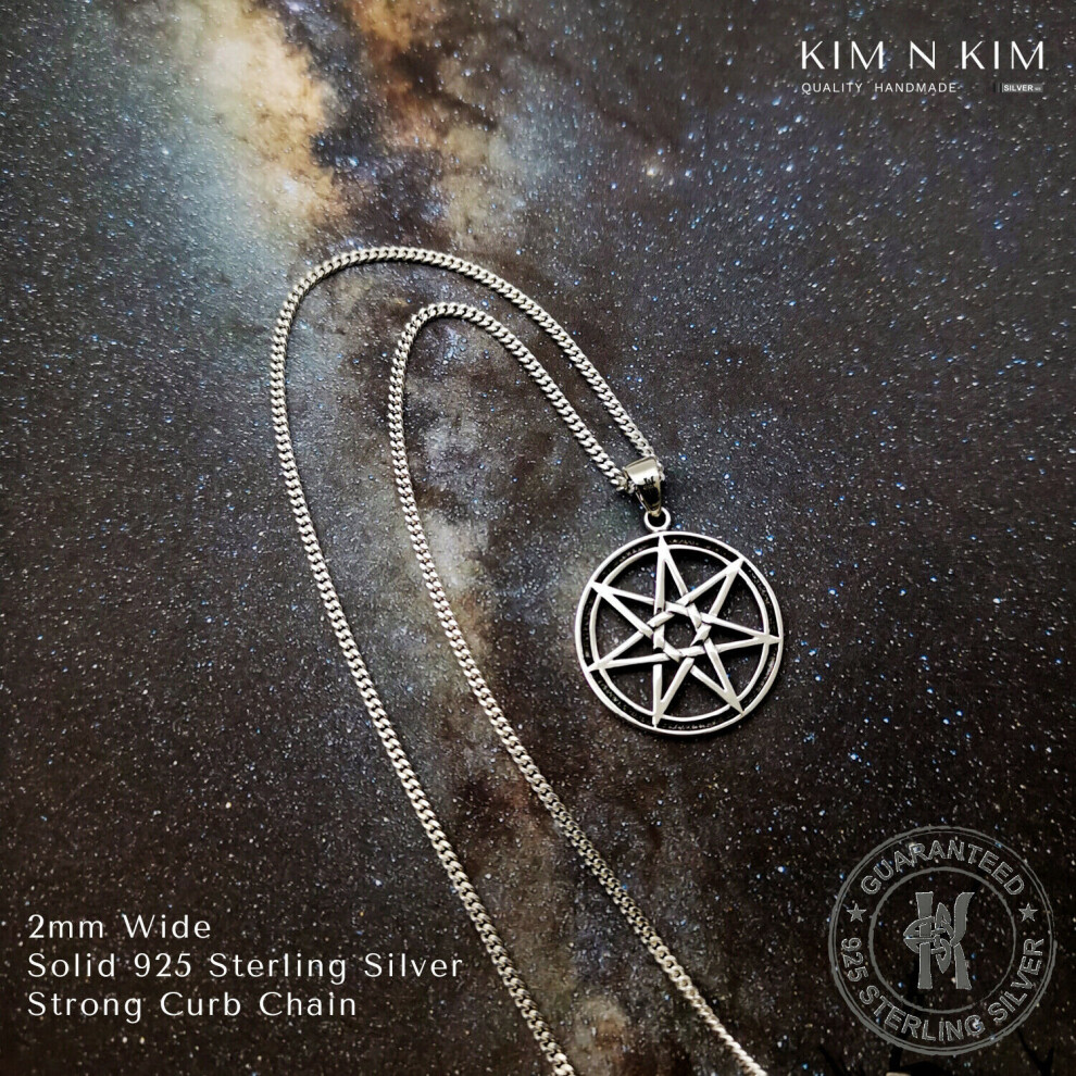 (18 Inch Curb Chain) Heptagram Elven Star Pagan Pendant Necklace /Free Engraving /Solid 925 Silver Description