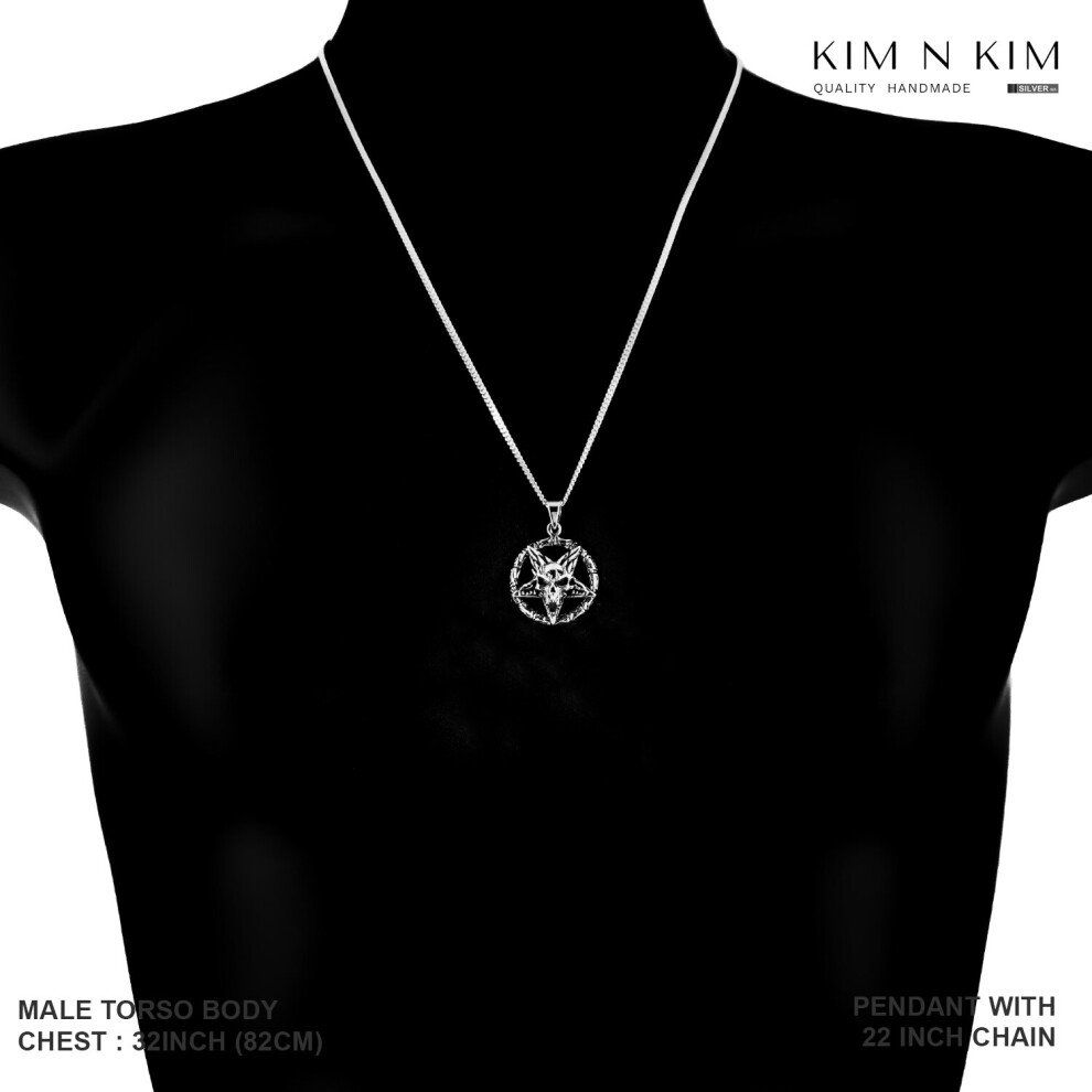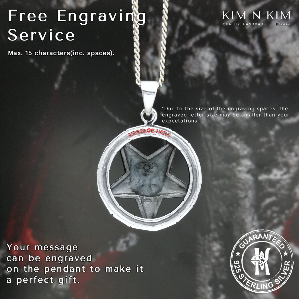 (18 inches) Skull with Inverted Pentagram Pendant Necklace/Star/Gothic/Free Engraving/925 Silver Description