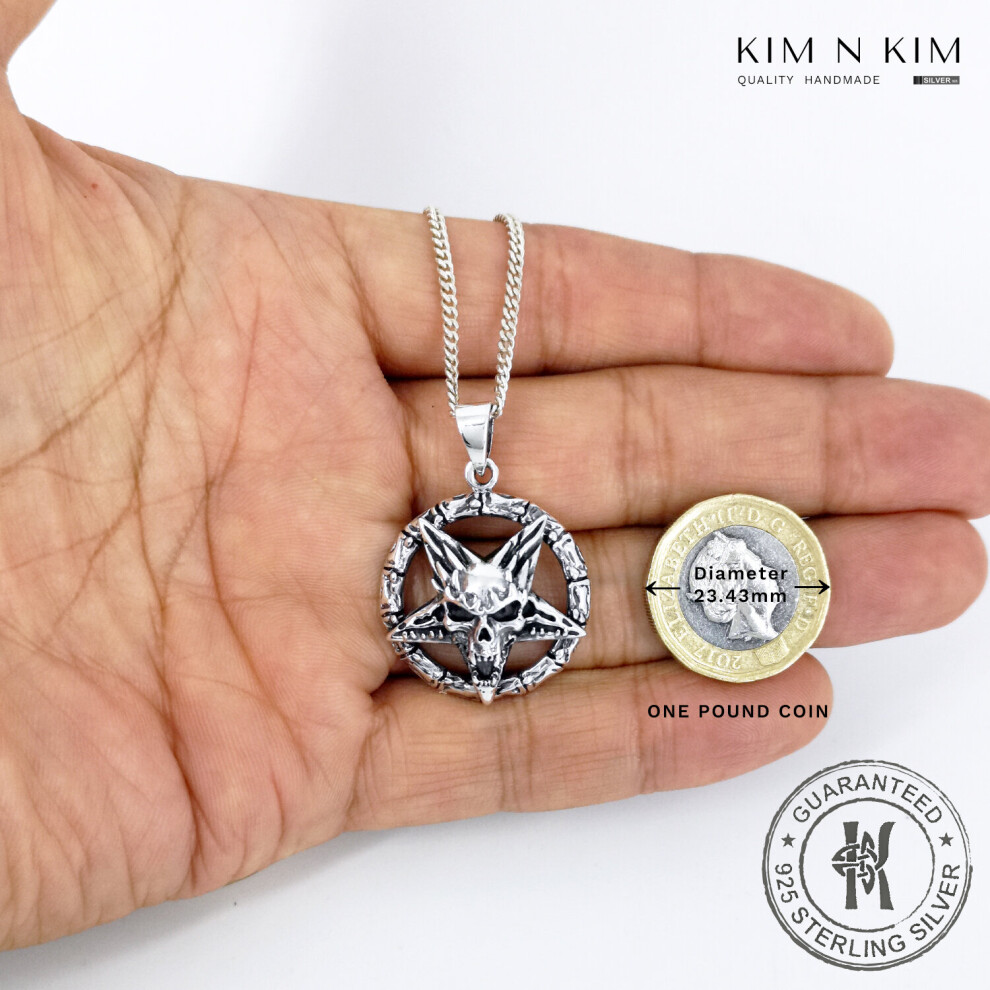 Brand or Name: 925 Sterling Silver Skull with Inverted Pentagram Pendant