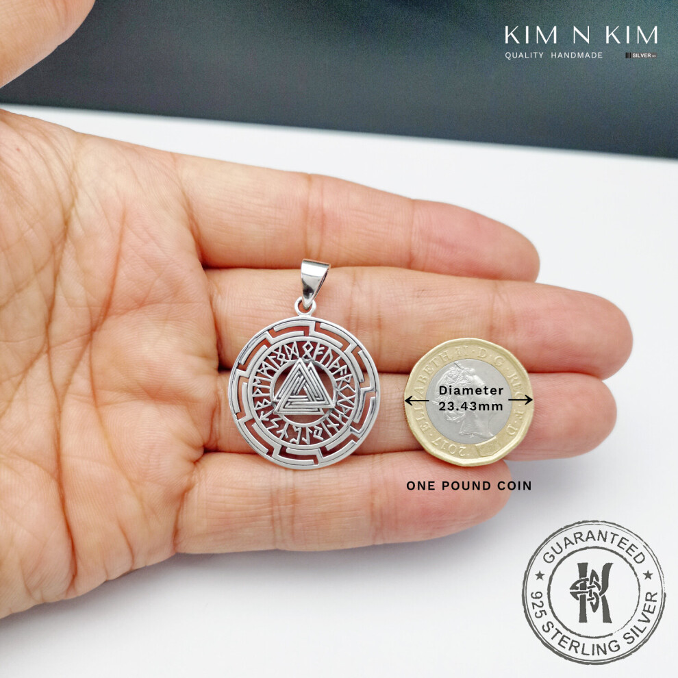 Brand or Name:Â 925 Sterling Silver Valknut with Rune Circle Pendant