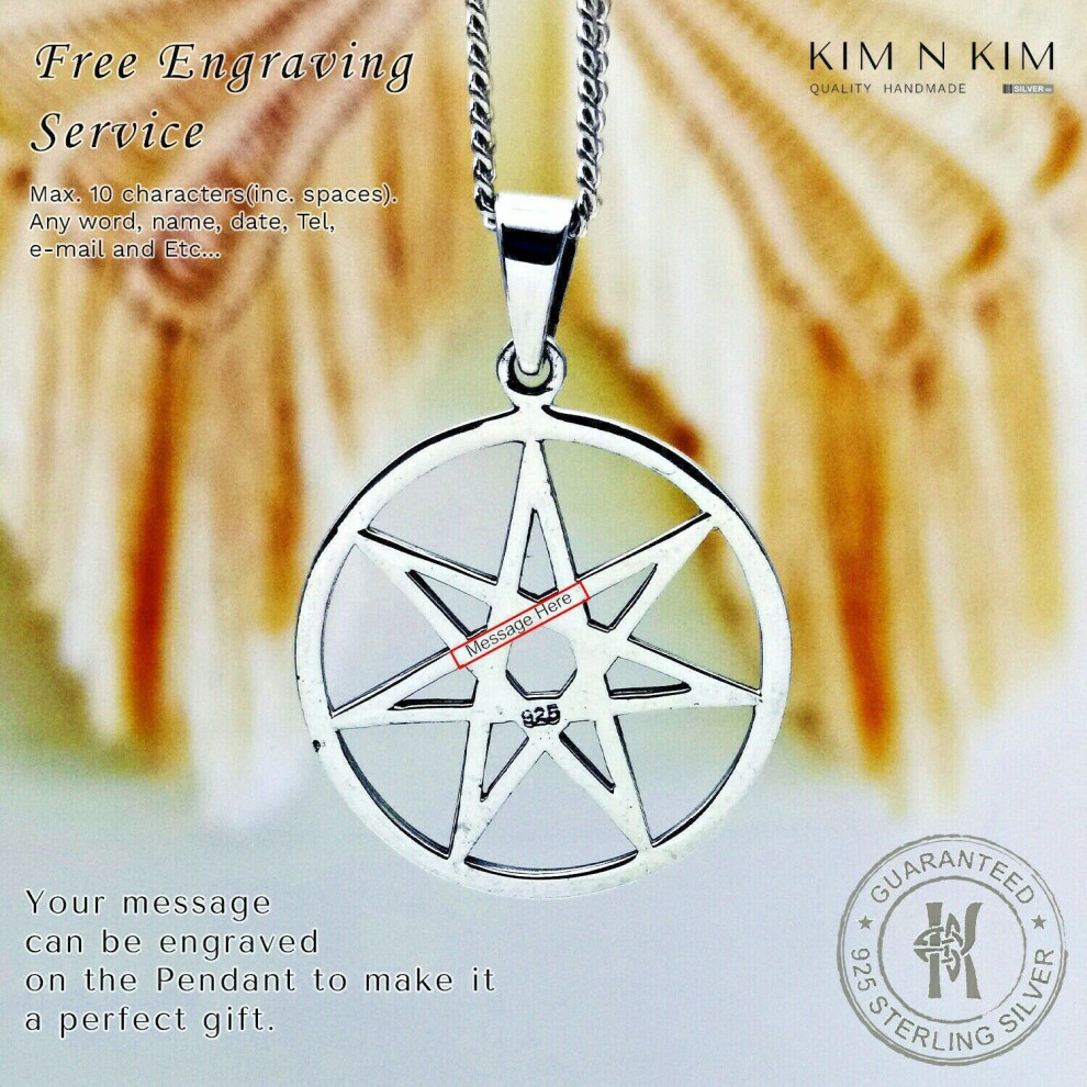 (20inch Chain) Heptagram Elven Star Pagan Pendant Necklace /Septagram /7pointed Elven Star /Free Engraving /Solid 925 Silver Description