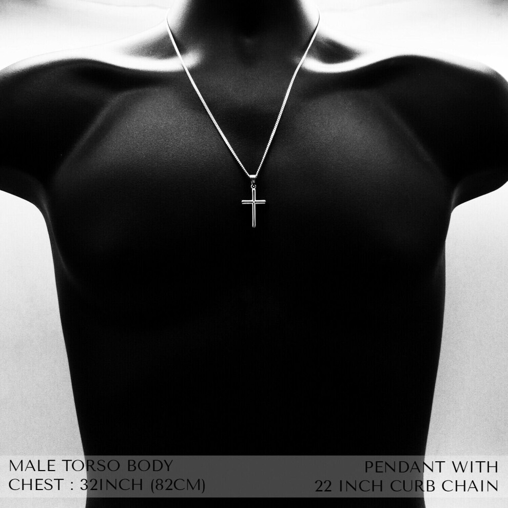 (26 inch Chain) Personalised Plain Thick Cross Pendant Necklace /Free engraving service /Solid 925 Sterling Silver/ Quality Description