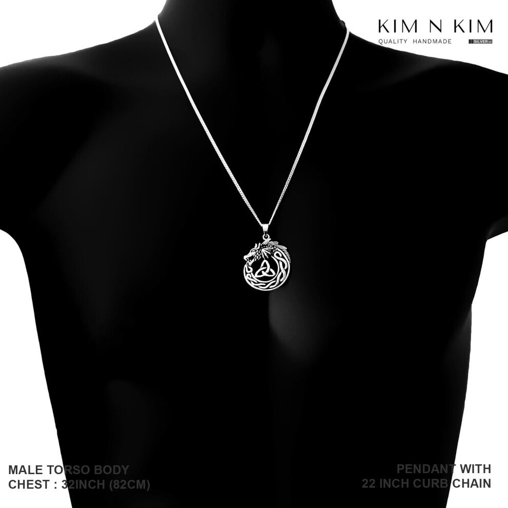 (32 inches, No Engraving) Celtic Triquetra with Dragon Pendant Necklace/Solid 925 Sterling Silver/Quality/Free Engraving – KimnKim Description