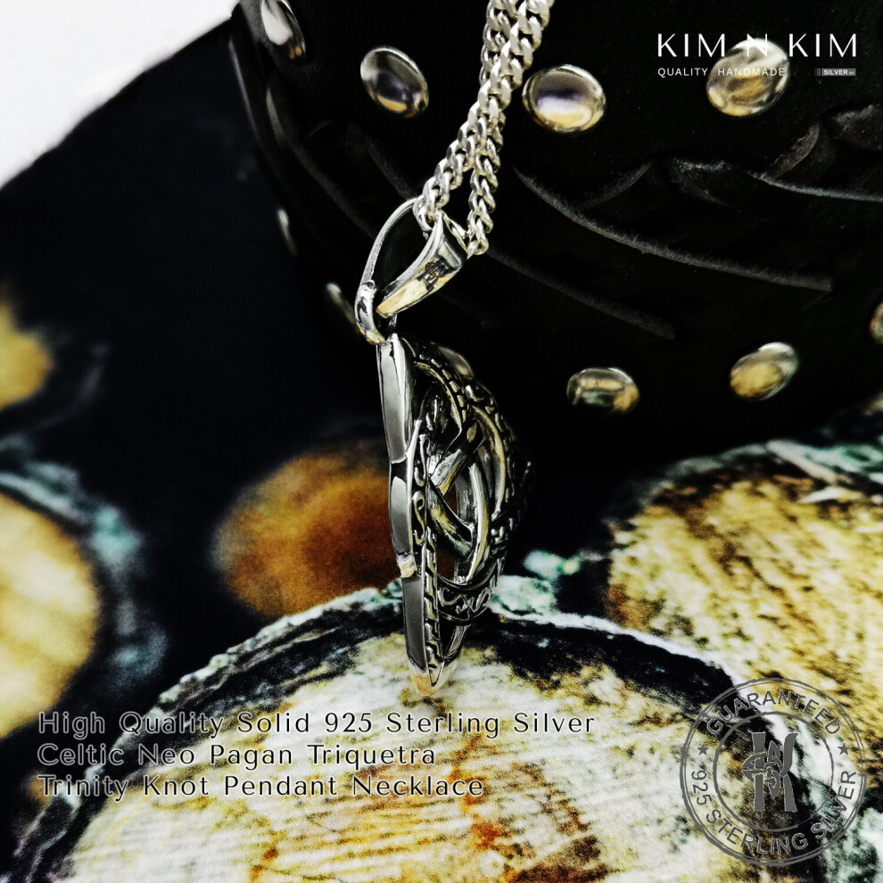 (+ 34inch) Celtic Knot Triquetra Trinity Pendant Necklace /Solid 925 Sterling Silver /Free Engraving Description