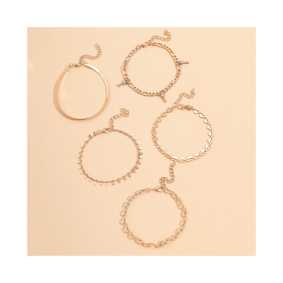 5Pcs Key Charm Chain Anklet For Women Boho Heart Ankle Bracelet Set on Leg Beach Foot Jewelry Gift Description