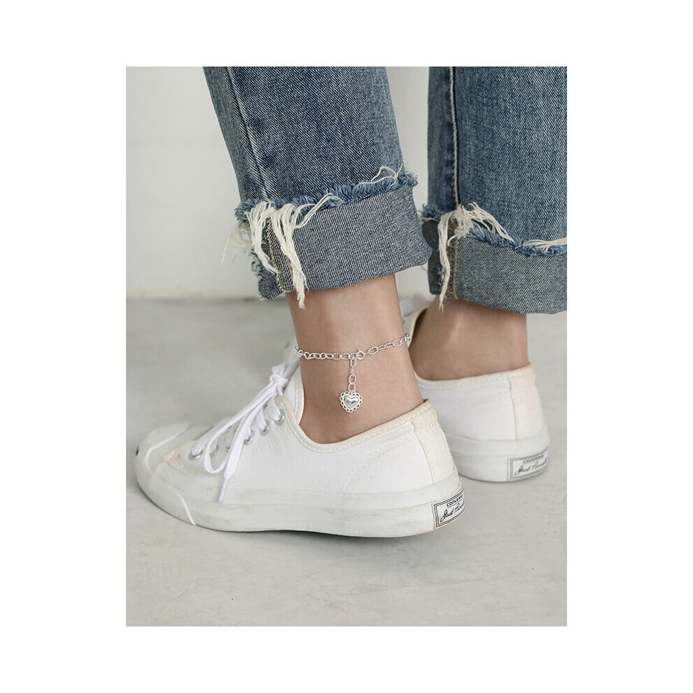 925 Sterling Silver Anklet Lace Heart-Shaped Pendant 18K Chain Anklet for Women Foot Jewelry Description