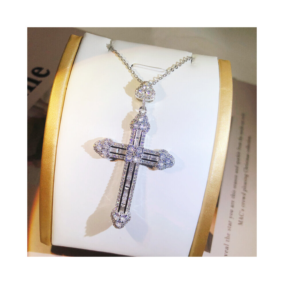925 Sterling Silver Cross Pendants Necklaces For Women Men Zircon Inlay Charms Necklace Chain Unisex Jewelry Description