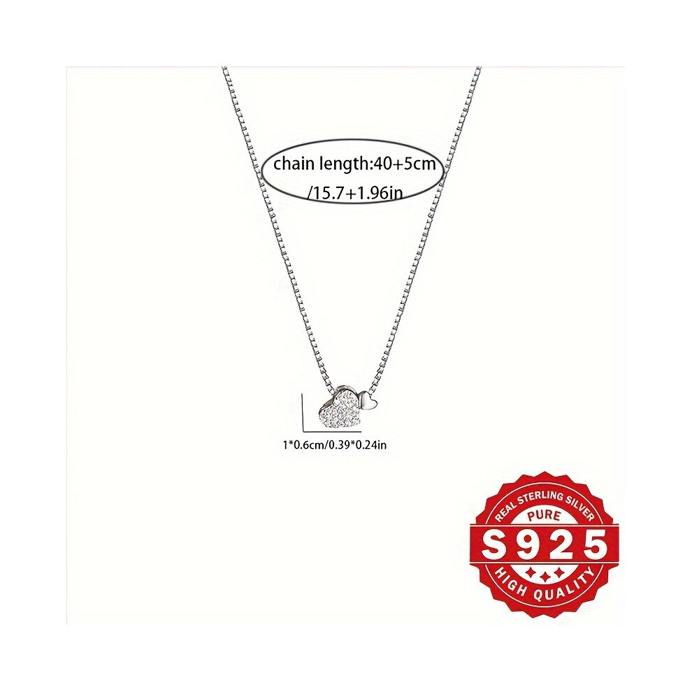 925 Sterling Silver Women’s Love Heart Inlaid Zircon Pendant Necklace Hypoallergenic Luxury Simple Heart-Shaped Clavicle Chain Description
