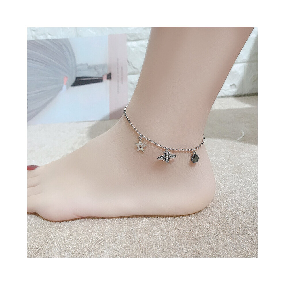 Ankle Bracelets On Leg Bee Anklets 925 Sterling Thai Silver Charm Adjustable Foot Chain Jewelry For Women Girls Description