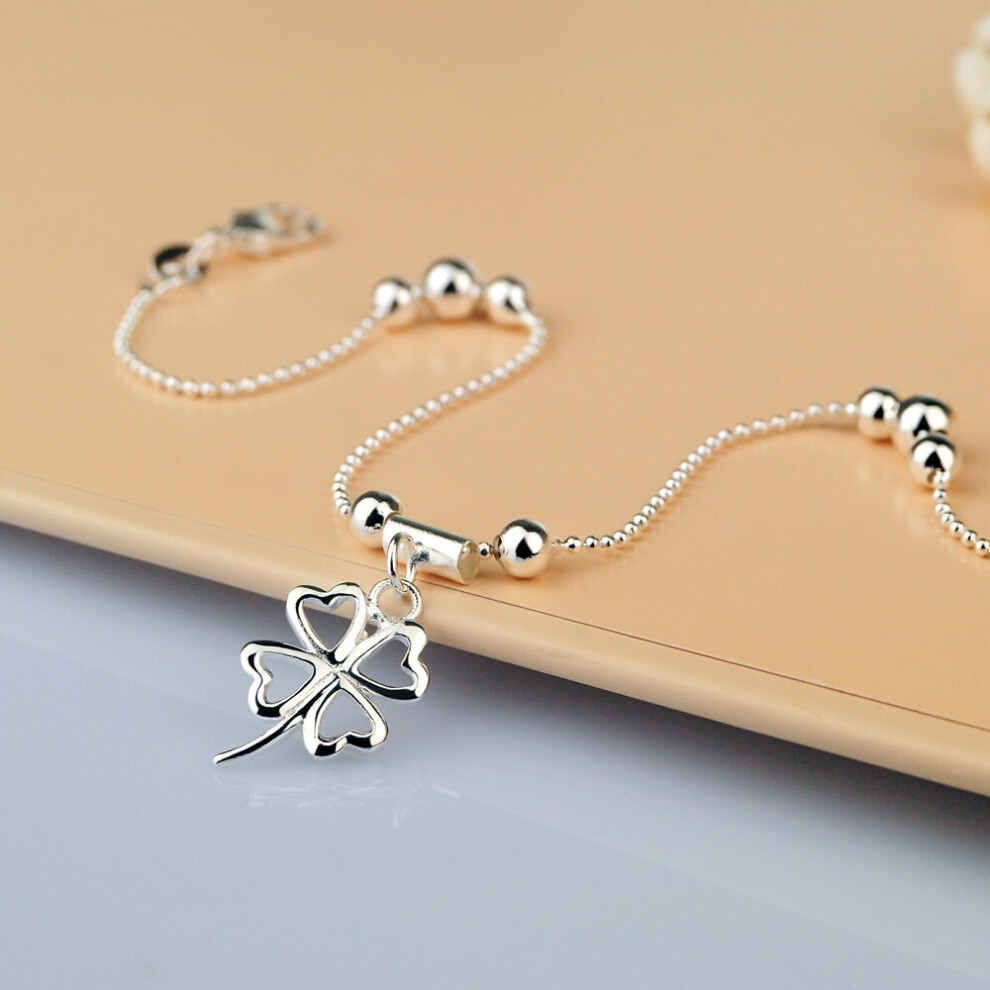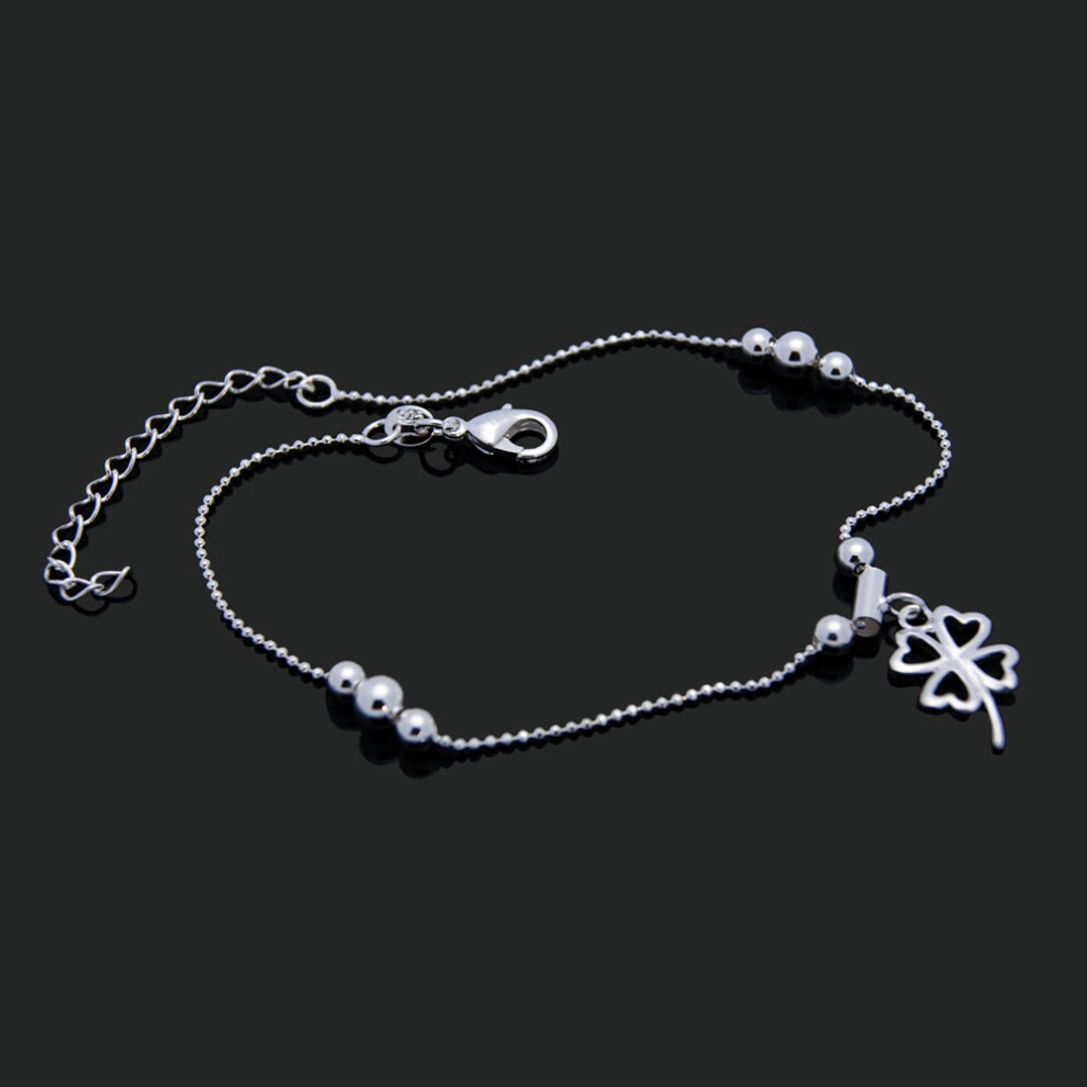 arrival women’s silver jewelry 925 silver anklets four-leaf clover ankle jewelry birthday beach J?ias Description