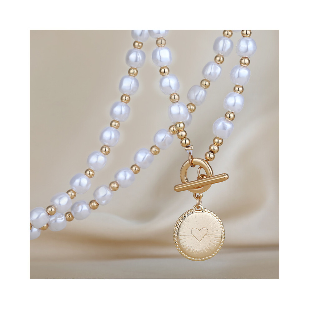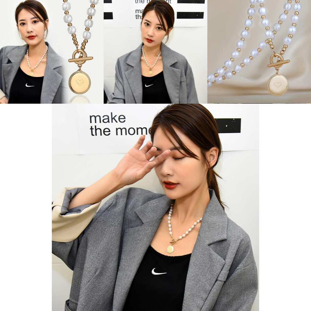Elegant Korean Style Pearl Heart Pendant Titanium Steel Necklace For Women And Men Description