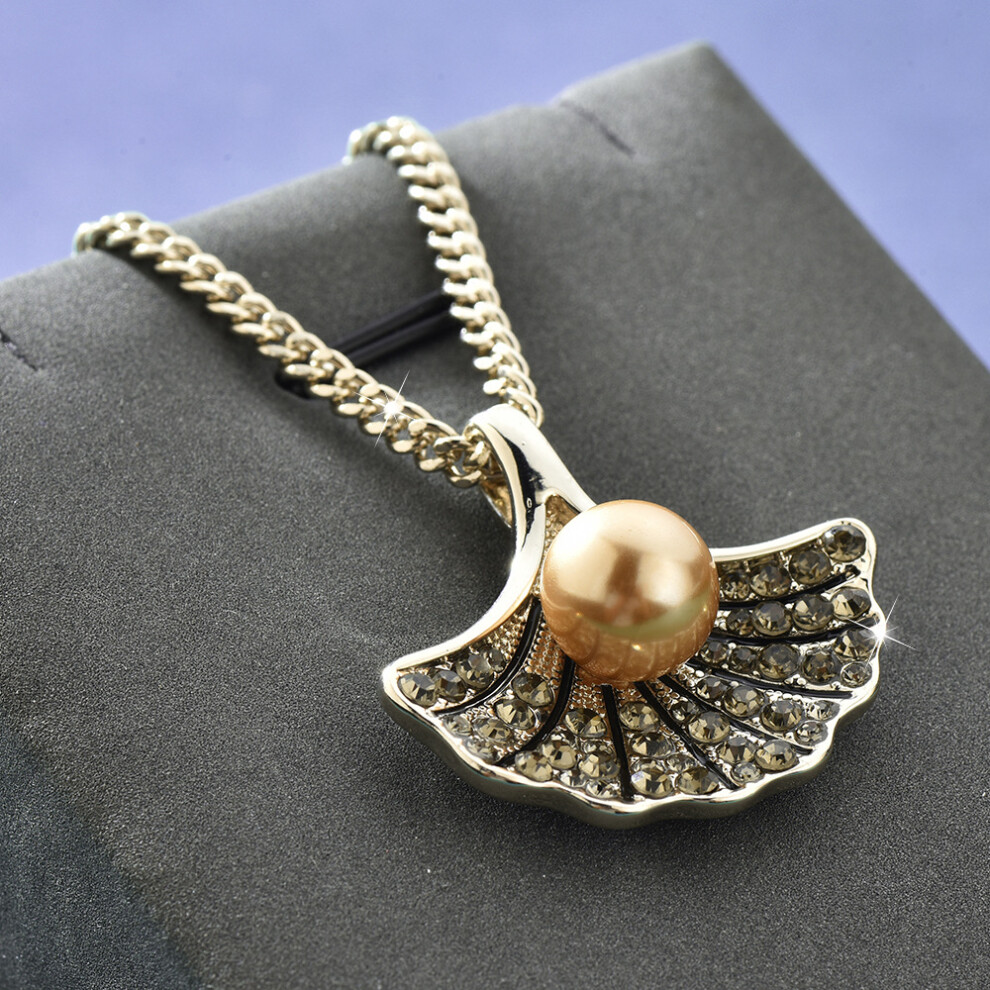 Elegant Pearl Scallop Necklace For Women In Stylish Coffee Gold Color For Autumn Winter Fashion Description