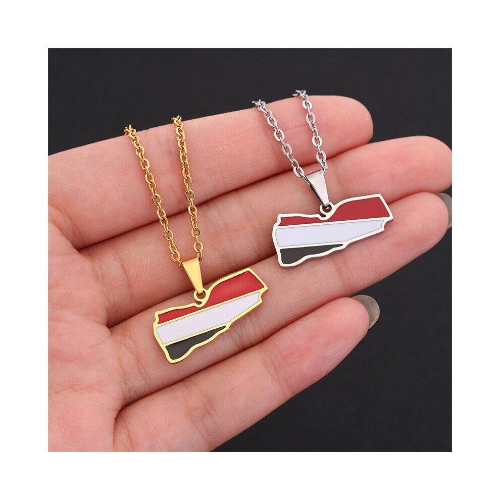 Enamel Yemen Map Flag Pendant Neckalces Silver Color/Gold Stainless Steel Neckalce Yemeni Charm Patriotic Gift Description