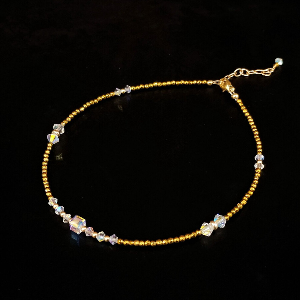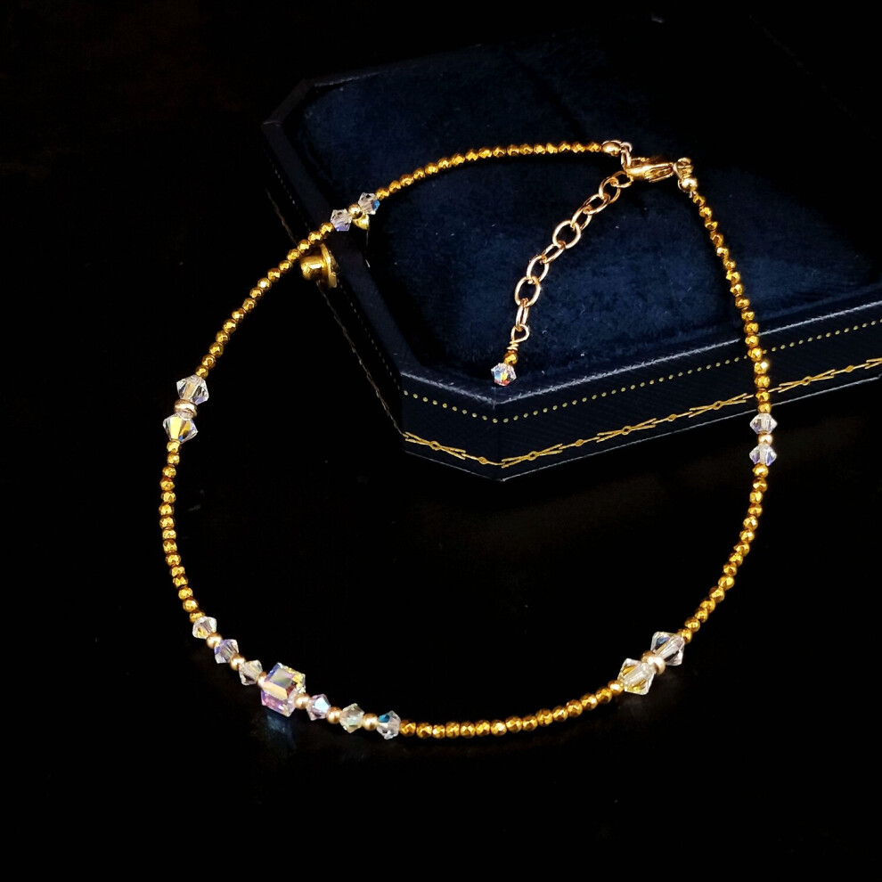 Golden Hematite Austrian Crystal 14K Filled Anklet 24+3cm Natural 2mm Stone Jewelry For Women Gift Description