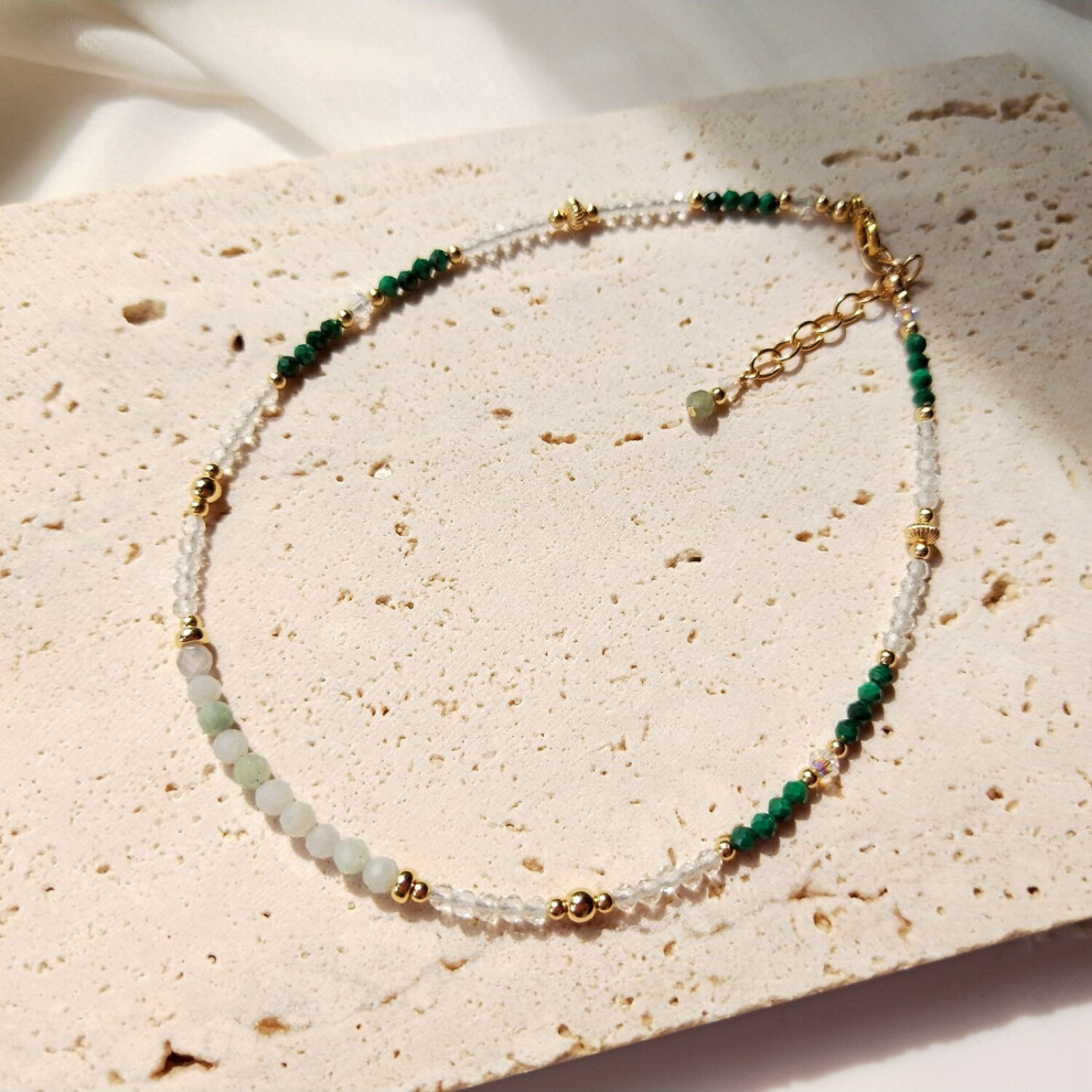Malachite Jade Clear Quartz 14K Filled Anklet 24+3cm Natural Stone Jewelry For Women Gift Description