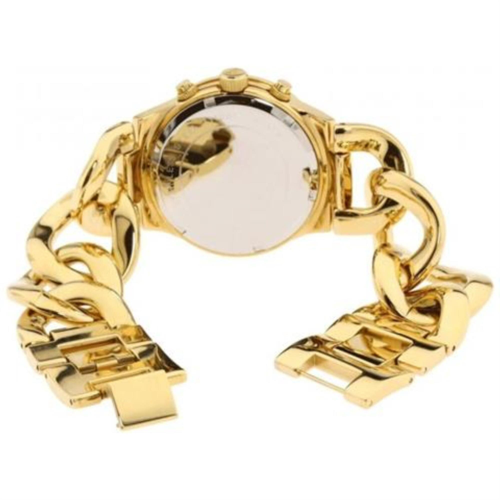 Michael Kors Runway Twist MK3131 Women’s Chronograph Fashion Wristwatch with Quartz Movement, 38mm diameter stainless steel case, gold dial, mineral glass and gold stainless steel strap.Gender WomenMovement Type QuartzDisplay type ChronographCase Diameter 38mm