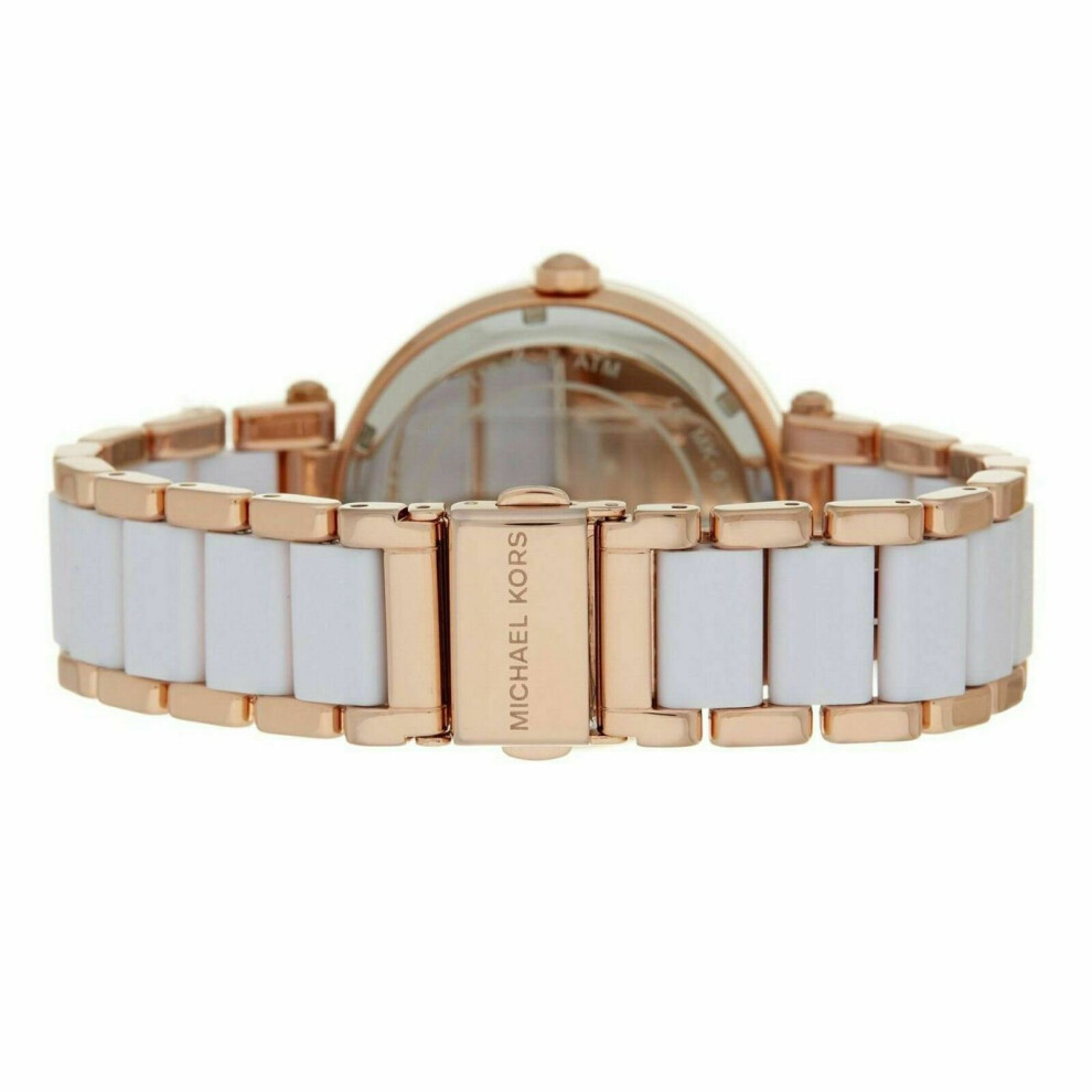 Age Group Adult Brand Guarantee 2 Years Case Colour Rose Gold Case Size 39mm Case Material Stainless Steel Case Finish Polished Dial Colour Mk Logo Dial Features Scratch-Resistant Gender Women’s Model Display Analog Movement Quartz (Battery) Glass Mineral Strap Colour Dual Tone Clasp Type Deployment Strap Type Stainless Steel & Acetate Strap Type Bracelet/Link Band Style Dress/Formal Watch Shape Round Water Resistance Yes Water Resistance 100 Metres / 10 ATM Year of Manufacture 2010-Now