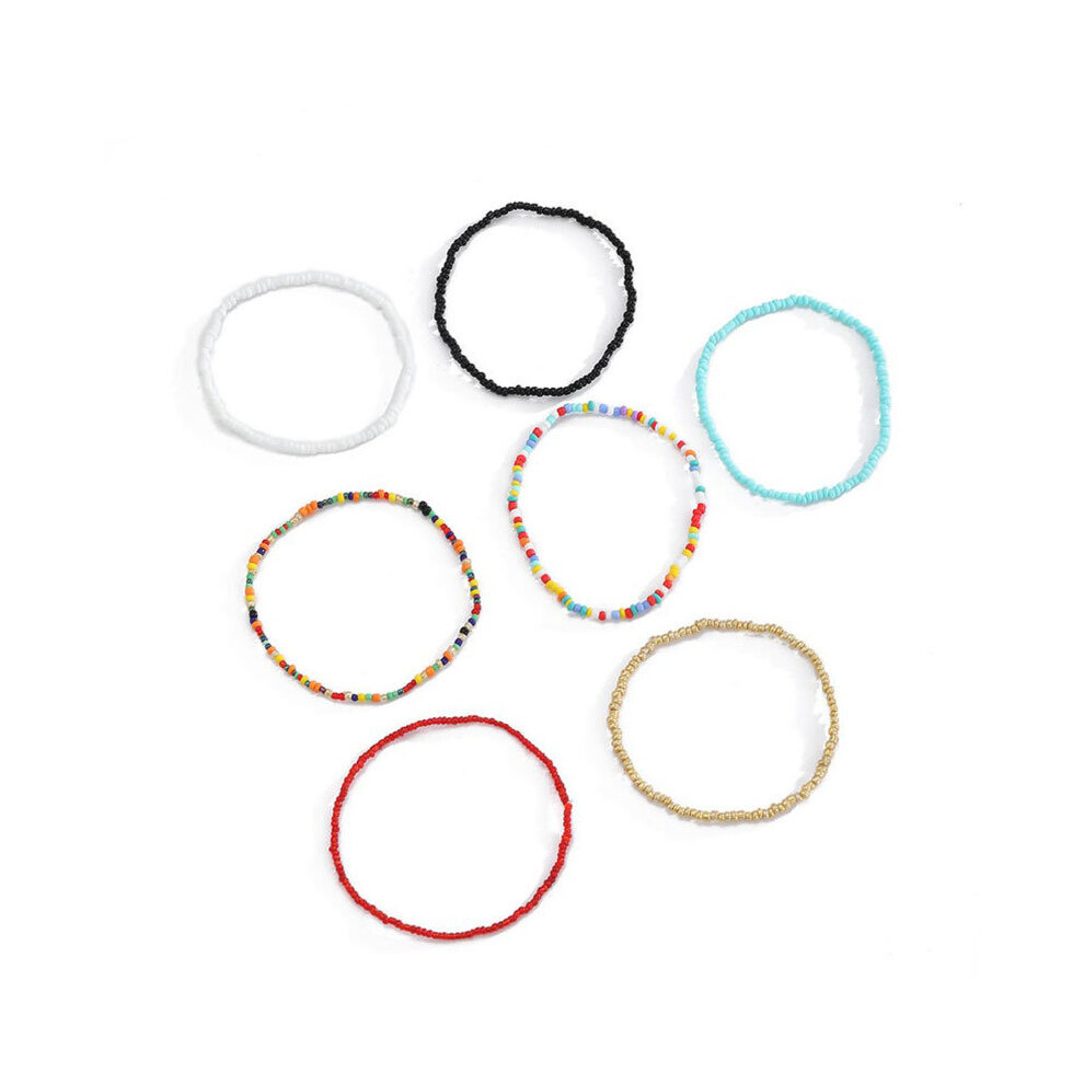 mixed rice bead 7-piece anklet bohemian elastic anklet ladies party Description