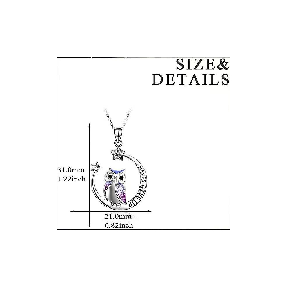 This necklace is made of high quality and eco-friendly material, a luxurious and dazzling necklace exudes elegance. Popular unique owl design, can be used as a gift for relatives and friends. Specification: Color: Sliver Size: Chain Length: 40+5 cm, Pendant size: 1.9 cm Material: Zircon+copper The package includes: 1 x Necklace