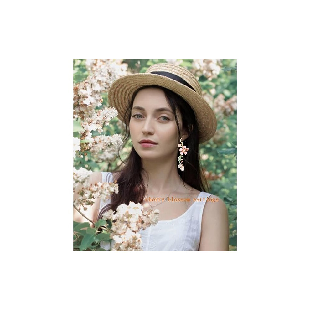 Pink Flower Dangle Earrings for Women Cute Pearl Leaf Sakura Leaf Earrings Fairy Statement Summer Refreshing Seaside Idyllic Holiday Earrings Description