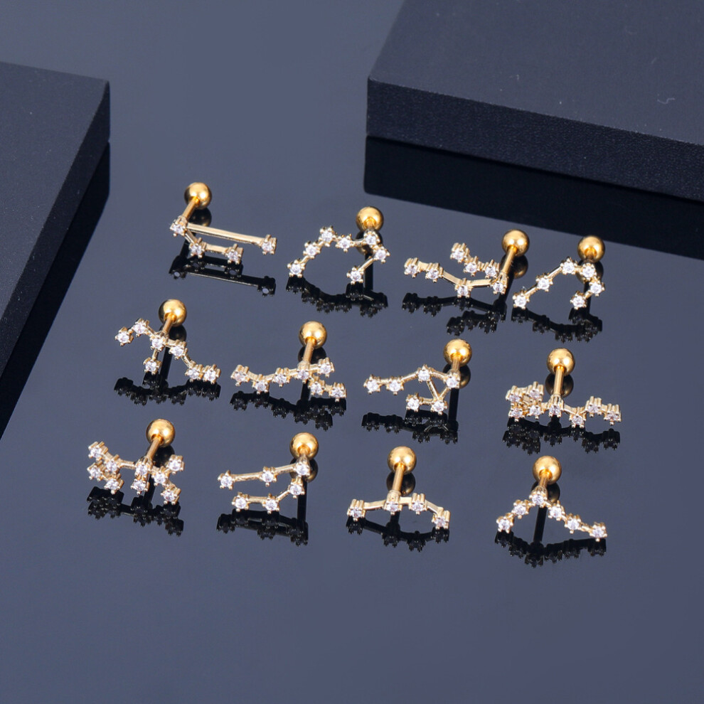 - These zodiac stud earrings are not just a fashion statement but a personalized accessory that resonates with your celestial sign. Whether you’re an Aries, Taurus, Gemini, or any other sign, we have the perfect pair to match your birth month and astrological personality. The zircon stone, known for its brilliance and clarity, enhances the overall look, making these earrings a chic addition to any jewelry collection.