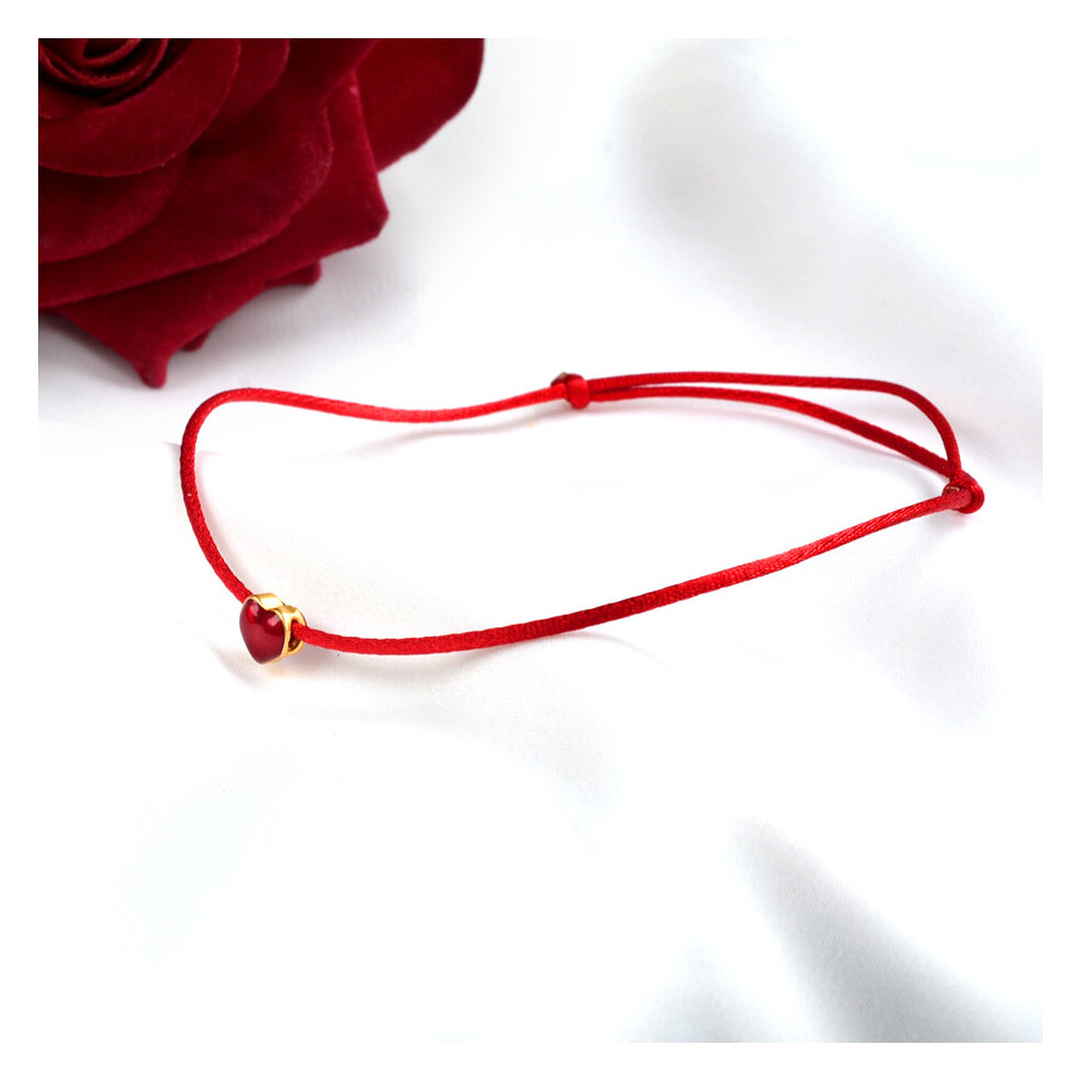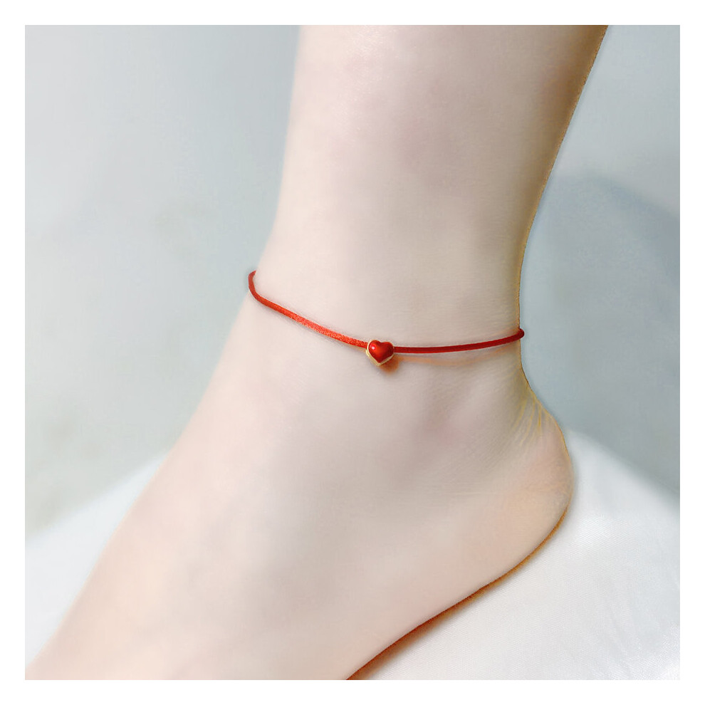Real 24K Anklet 999 Heart Pendant Adjustable Red Rope for Women Fine Jewelry Gift J573 Description