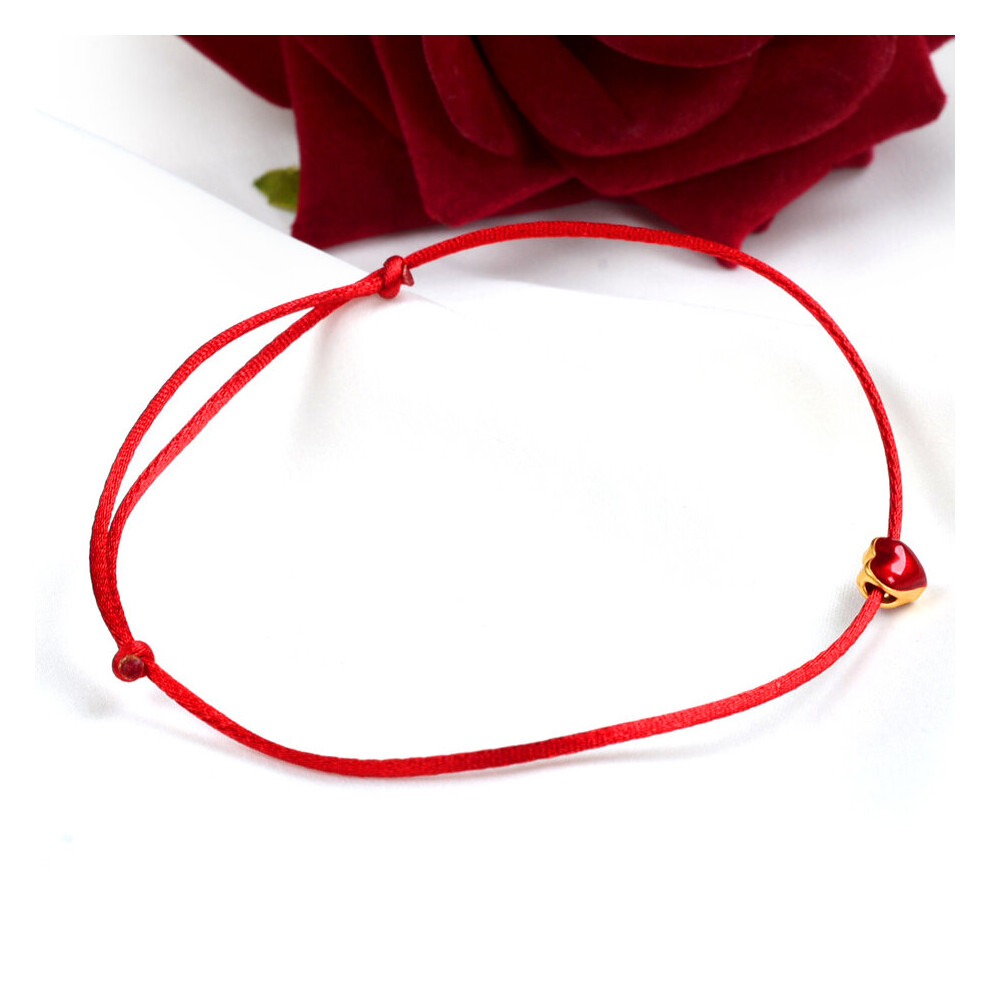 Real 24K Anklet 999 Heart Pendant Adjustable Red Rope for Women Fine Jewelry Gift J573