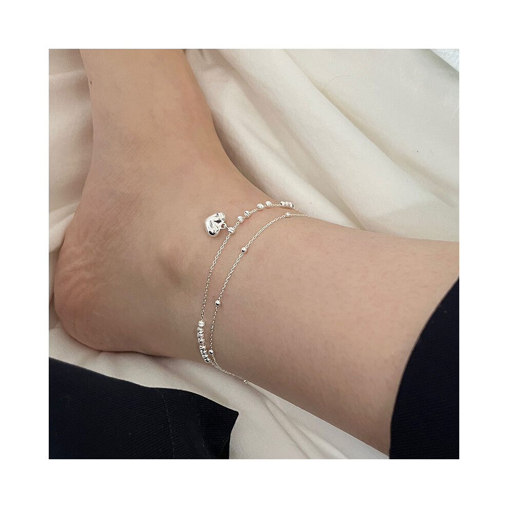 Real 925 Sterling Silver Double Beads Chain Anklets For Woman Heart Ankle Bracelet On The Leg Women Barefoot Summer Jewelry Description