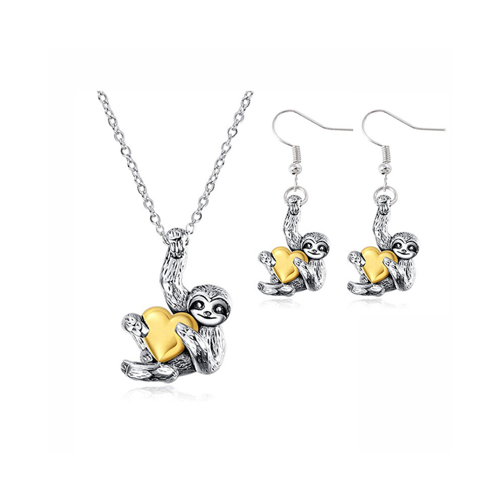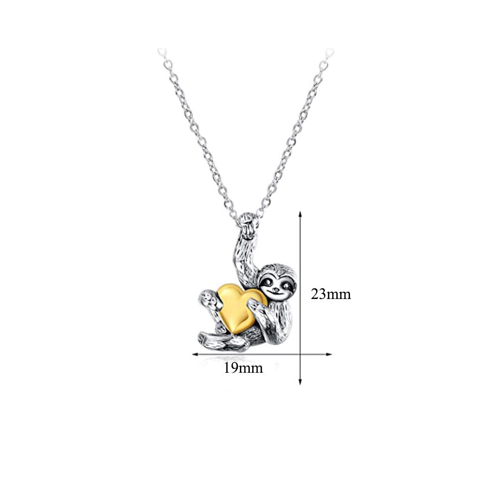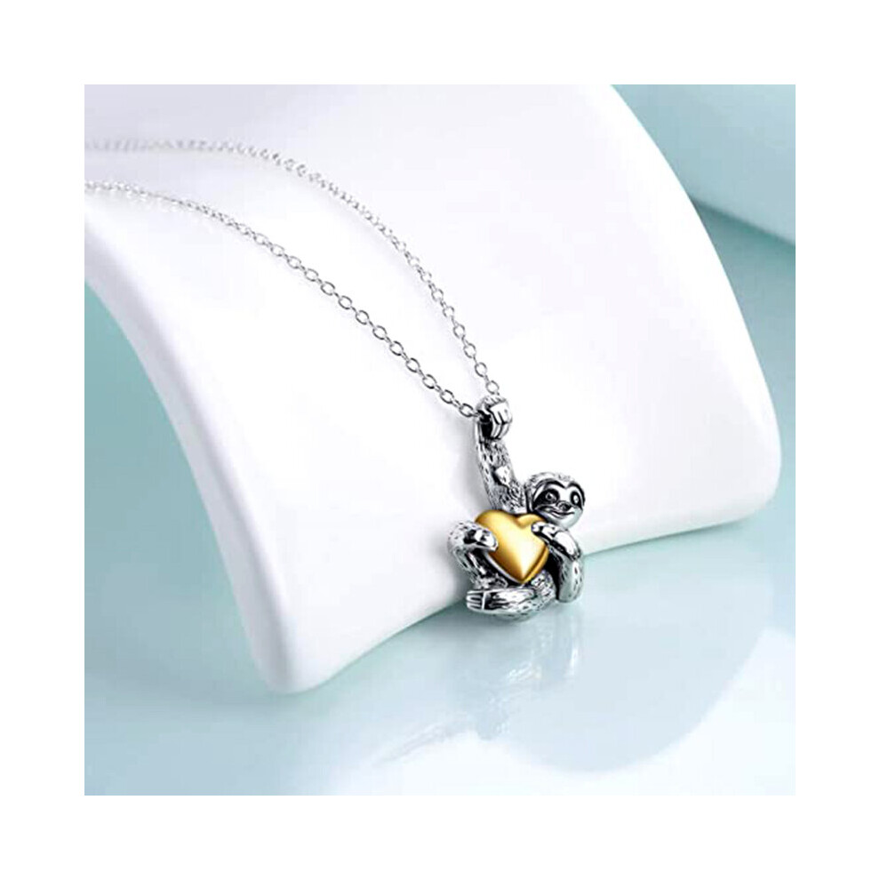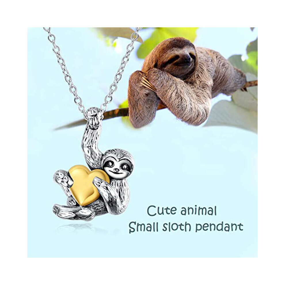 Silver Small Sloth Pendant Necklace Heart Sloth Necklaces For Women Girls Animal Jewelry Gift Description