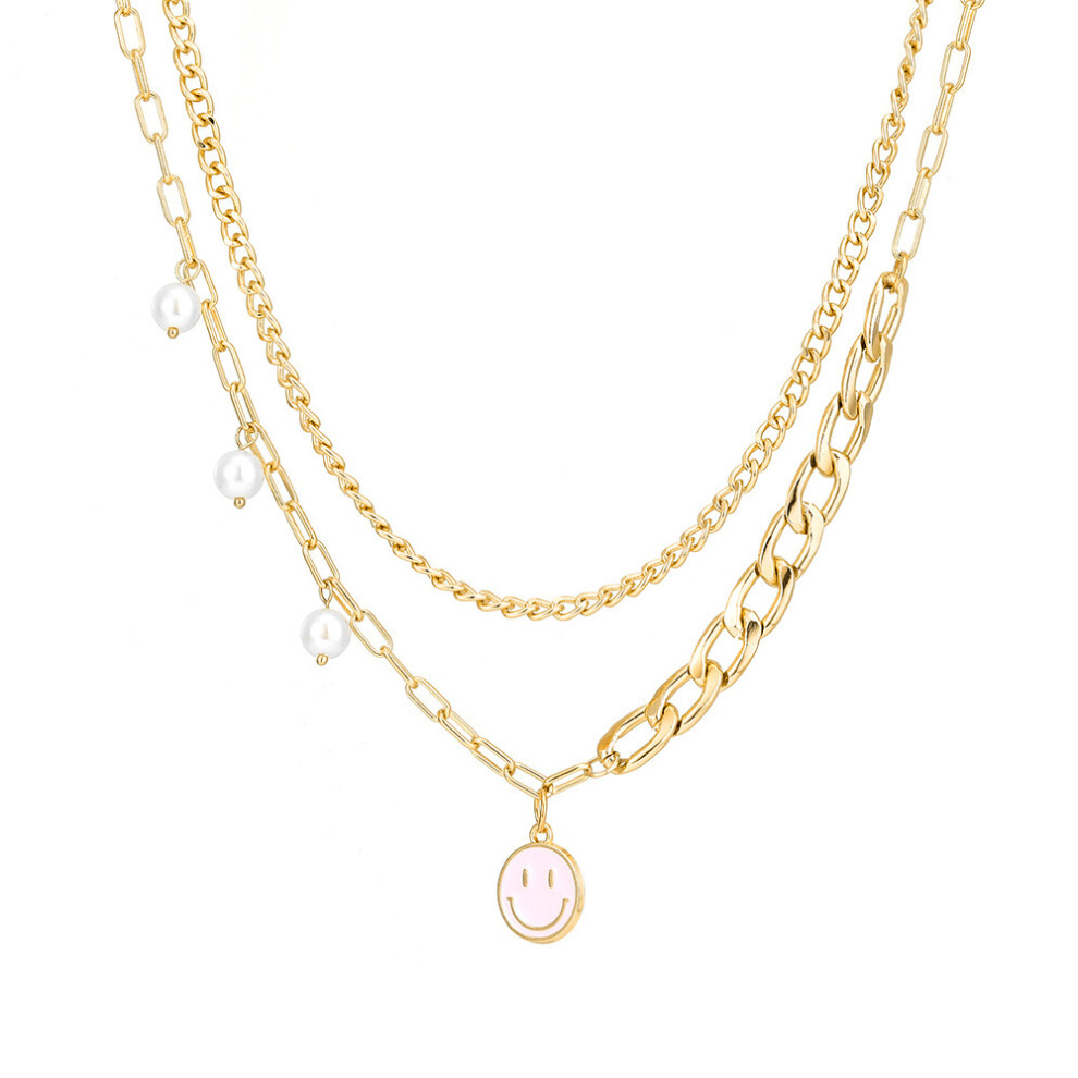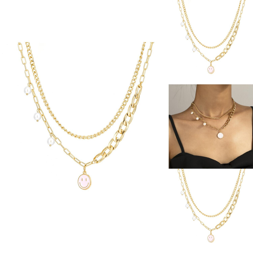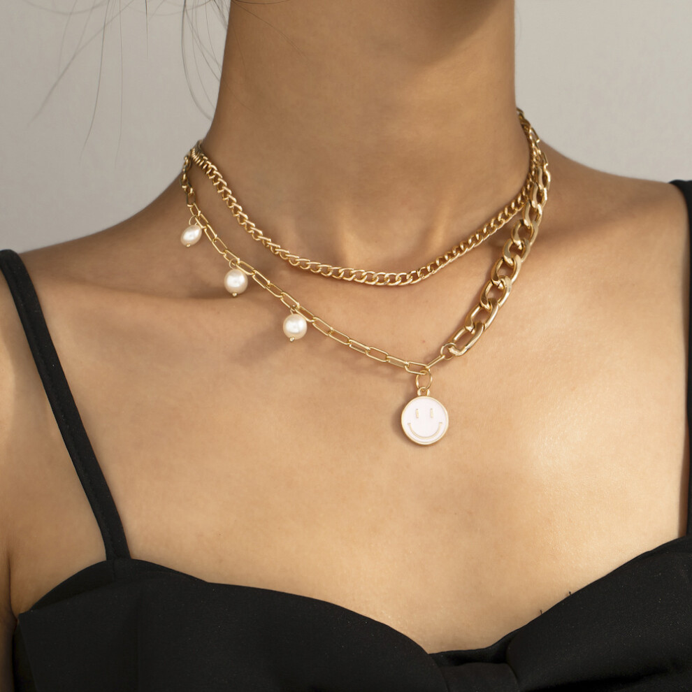 Stylish Smile Multilayered Face Pearl Necklace Trendy Jewelry For Women With Geometric Design Description