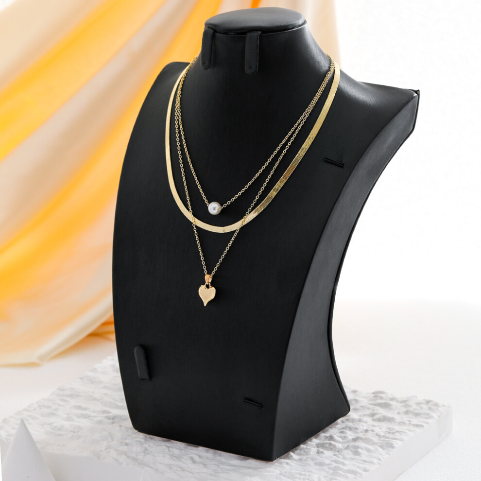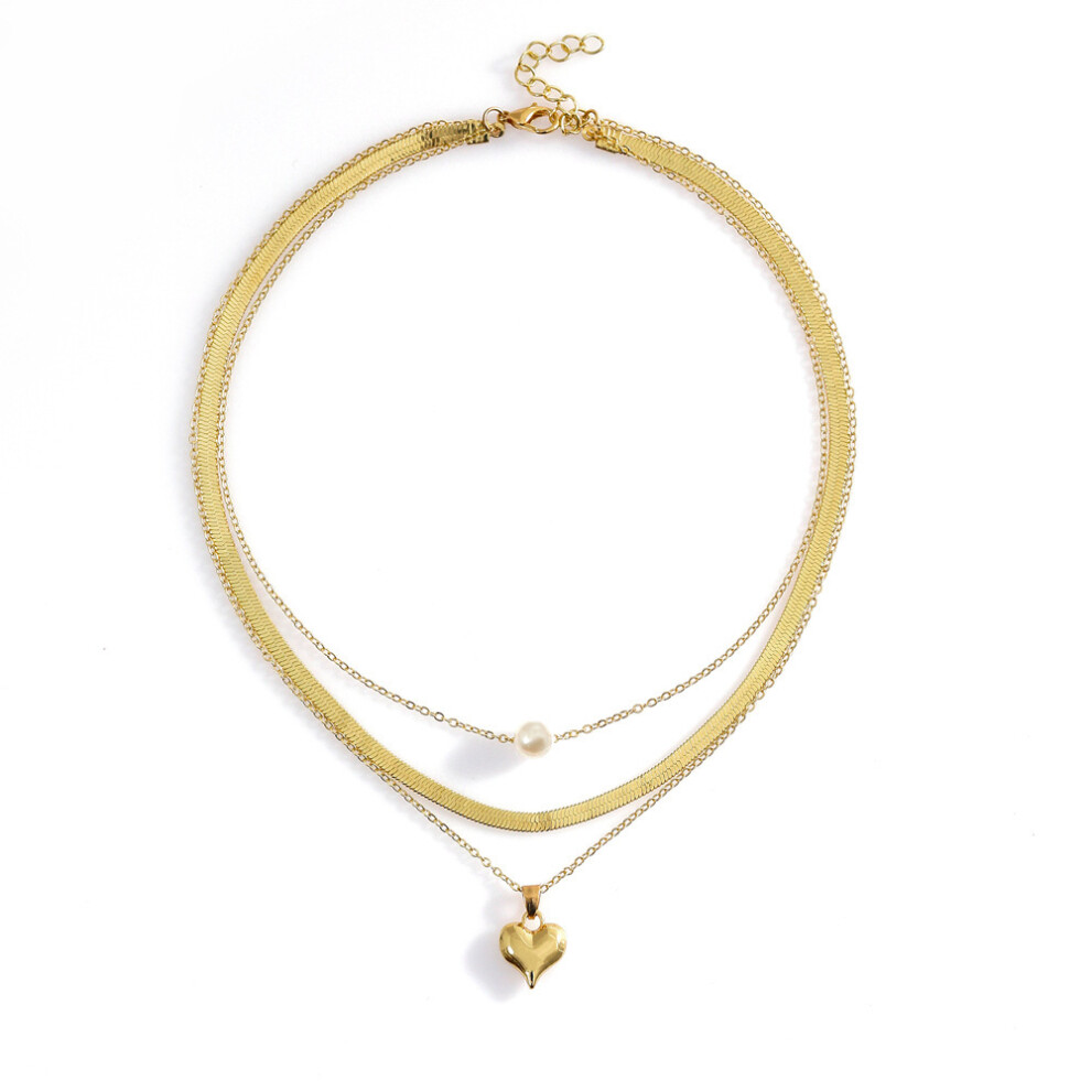 Trendy Layered Heart Pendant Necklace With Alluring Pearl Accent For Stylish Women Description