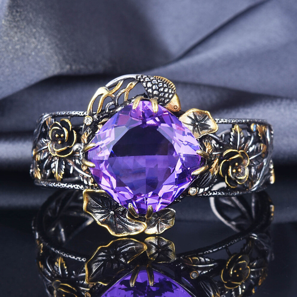 Vintage Charms Amethyst Gemstone Bracelets for Women Silver Hollow Violet Rose Wristlet Birthday Gift Description