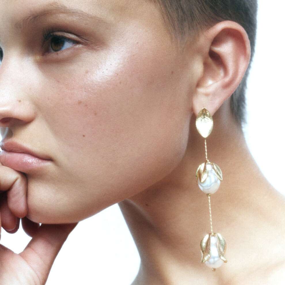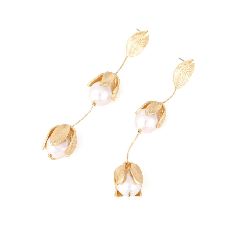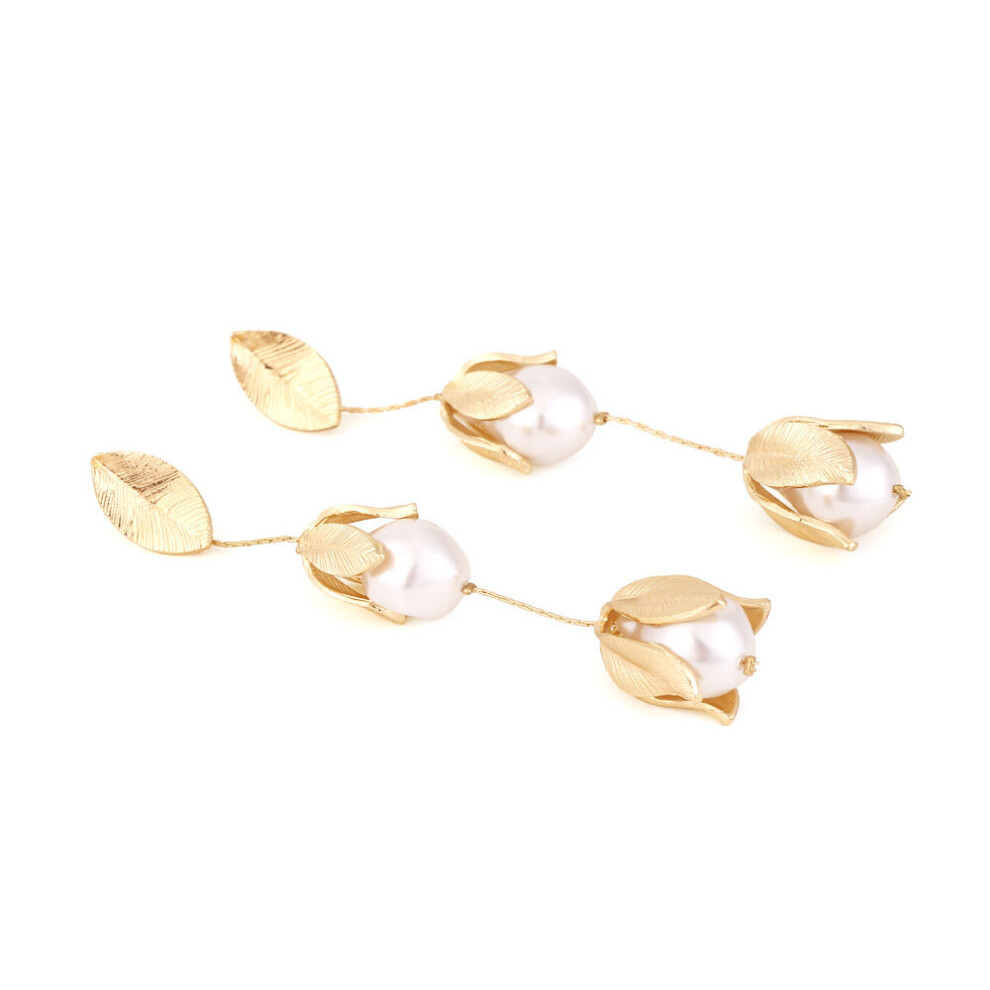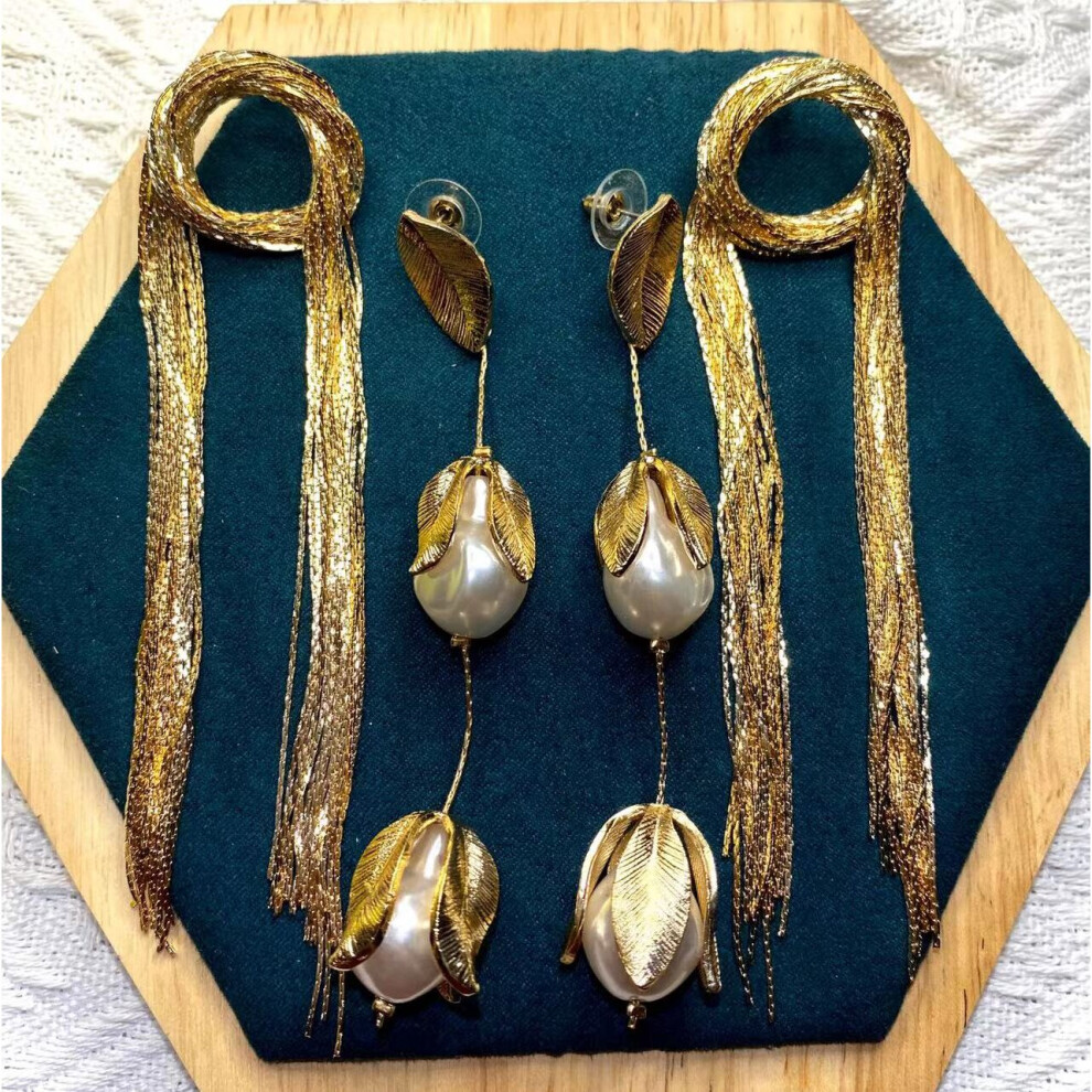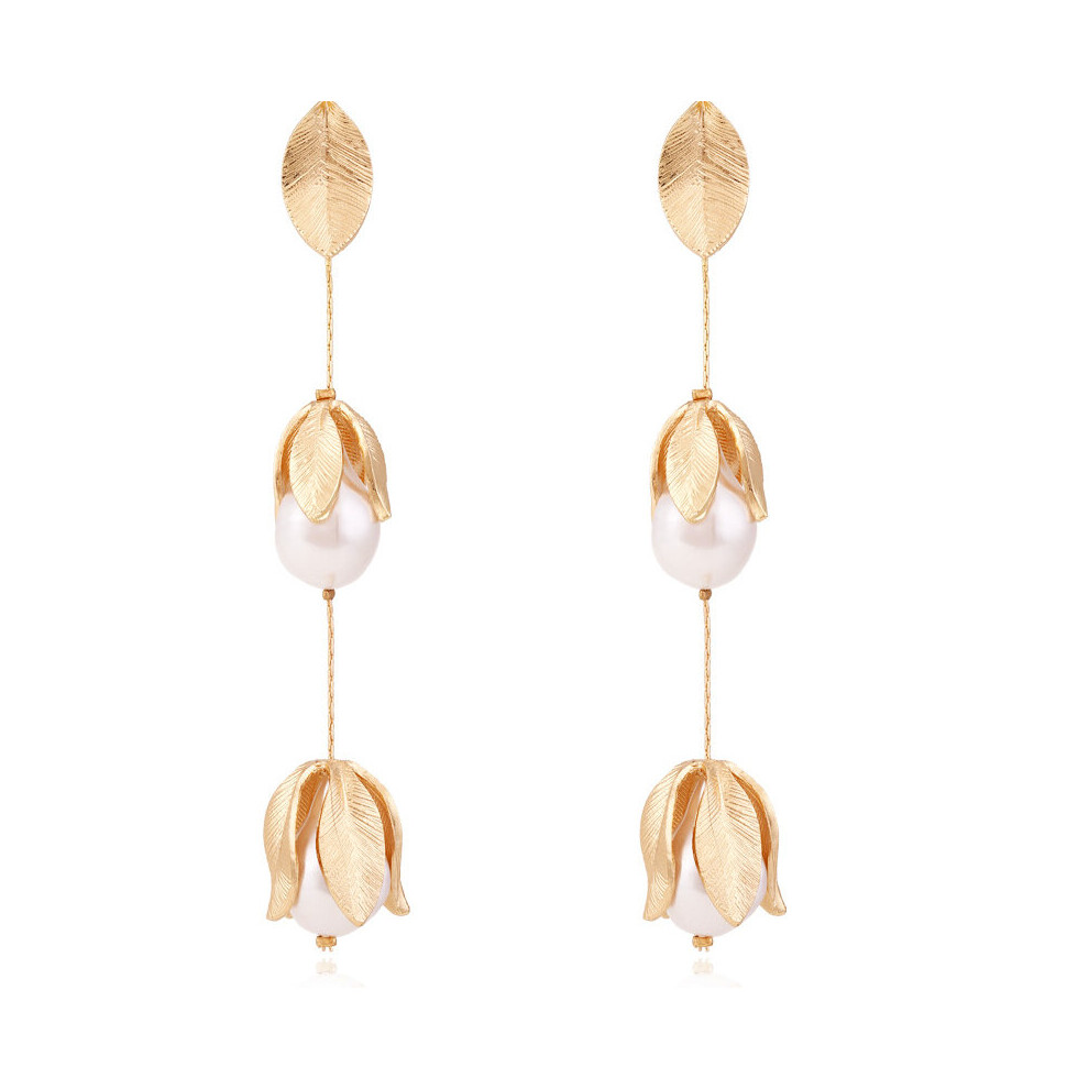 Za Temperament Long Pearl Flower Earrings Leaf Tassel Earrings Description